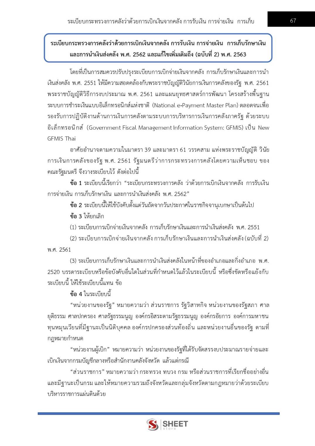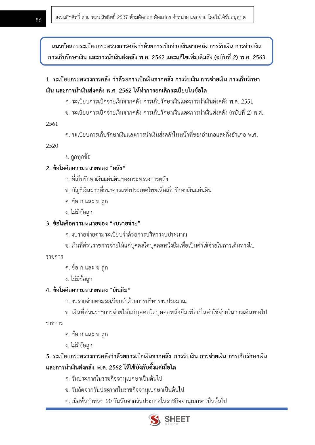 – แนวข้อสอบระเบียบกระทรวงการคลังว่าด้วยการเบิกเงินจากคลัง การรับเงิน การจ่ายเงิน การเก็บรักษาเงินและการนำเงินส่งคลัง พ.ศ. 2562 และที่แก้ไขเพิ่มเติมถึง (ฉบับที่ 2) พ.ศ. 2563