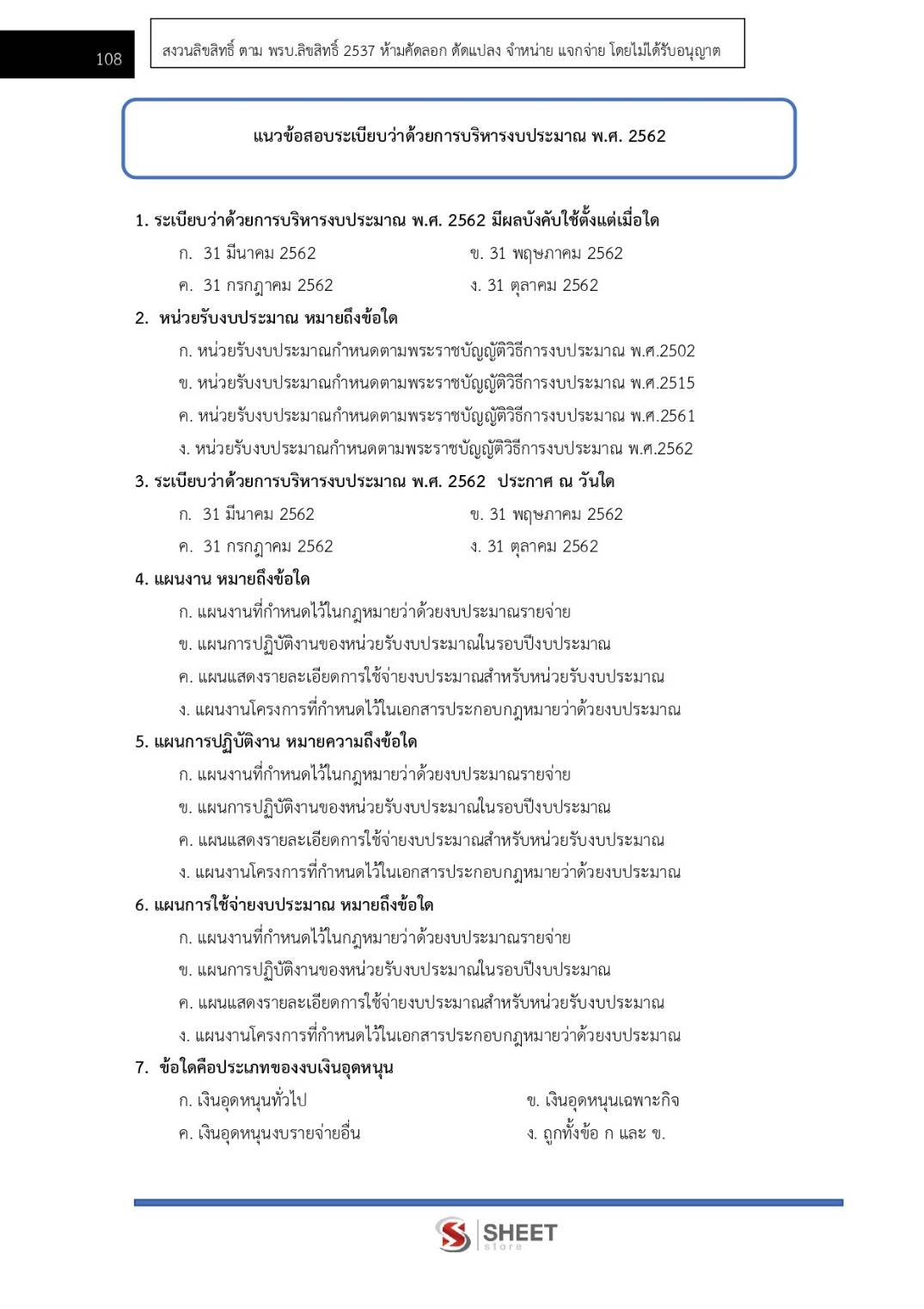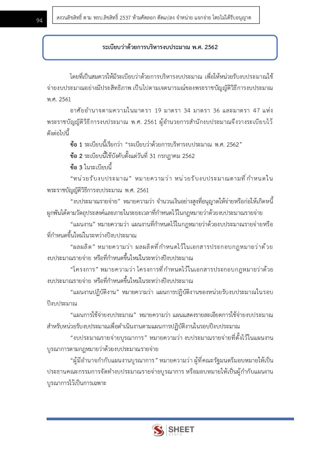 -แนวข้อสอบระเบียบว่าด้วยการบริหารงบประมาณ พ.ศ. 2562