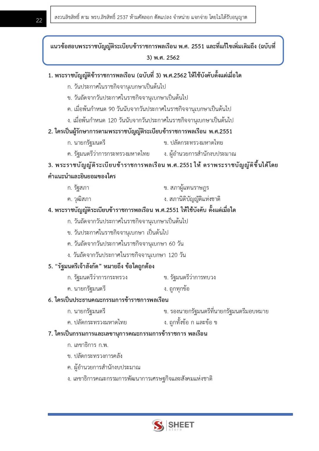 – แนวข้อสอบสรุปสาระสำคัญพระราชบัญญัติระเบียบข้าราชการพลเรือน พ.ศ. 2551 และที่แก้ไขเพิ่มเติมถึง (ฉบับที่ 3) พ.ศ. 2562