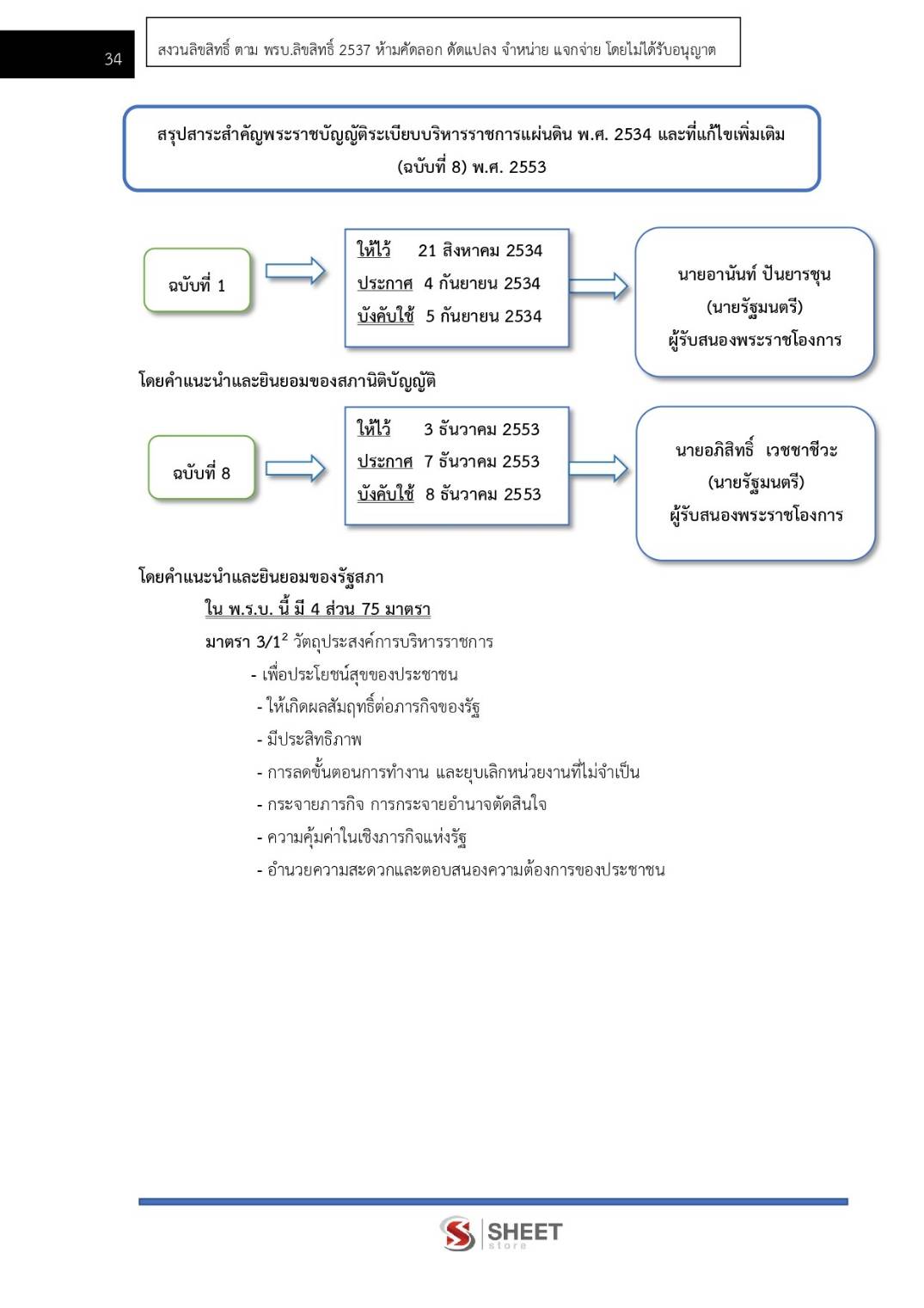 – สรุปพระราชบัญญัติระเบียบบริหารราชการแผ่นดิน พ.ศ. 2534 และที่แก้ไขเพิ่มเติมถึง (ฉบับที่ 8) พ.ศ. 2553