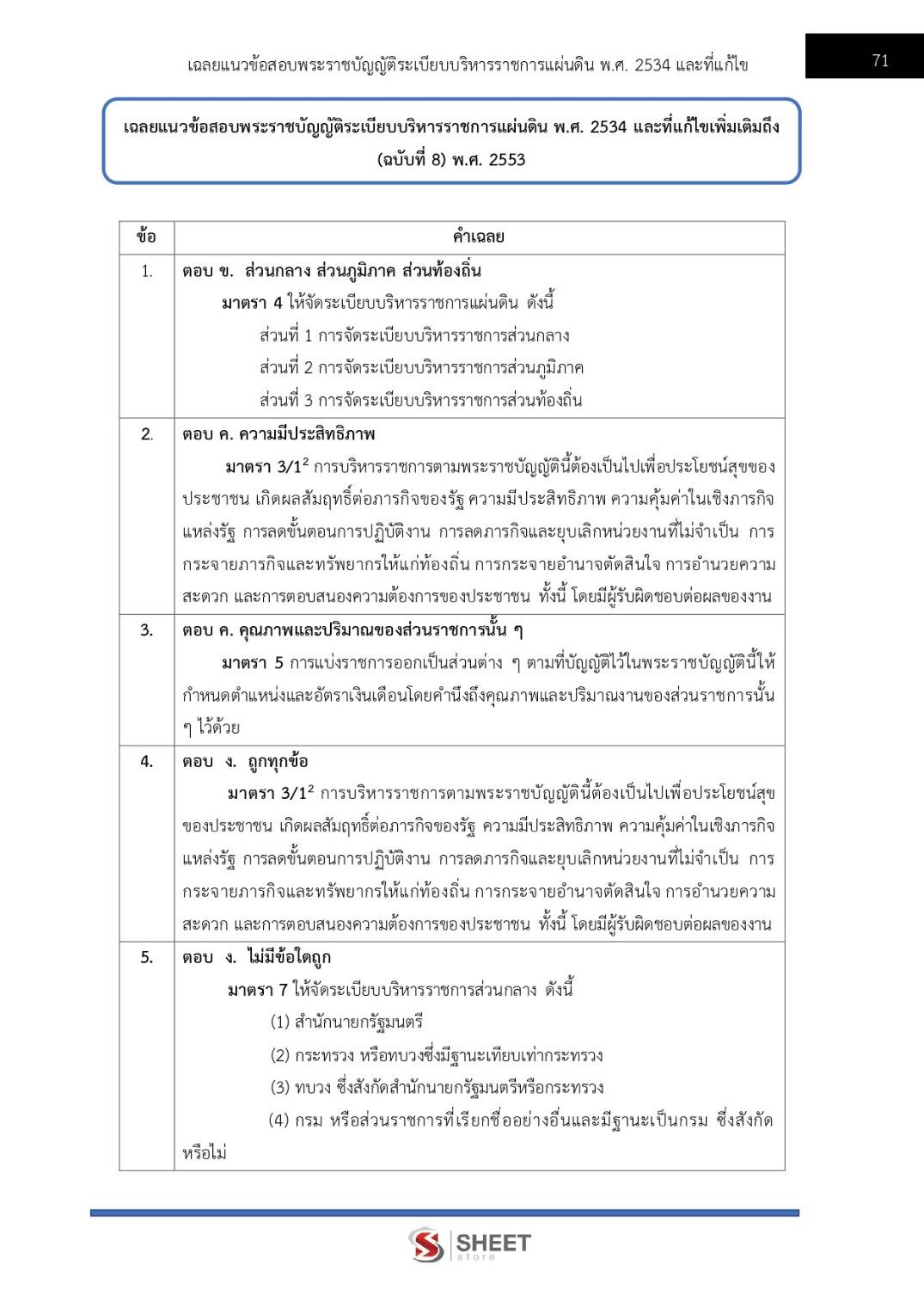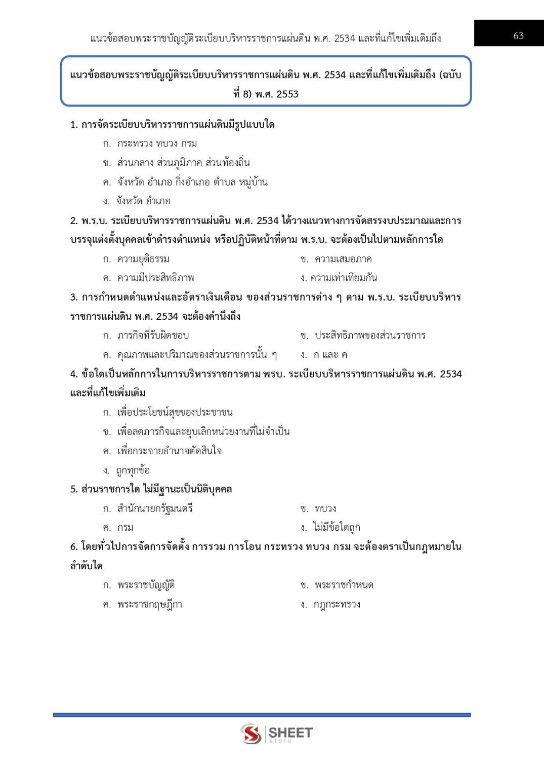 – แนวข้อสอบสรุปพระราชบัญญัติระเบียบบริหารราชการแผ่นดิน พ.ศ. 2534 และที่แก้ไขเพิ่มเติมถึง (ฉบับที่ 8) พ.ศ. 2553