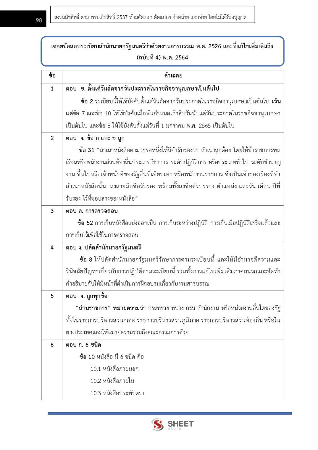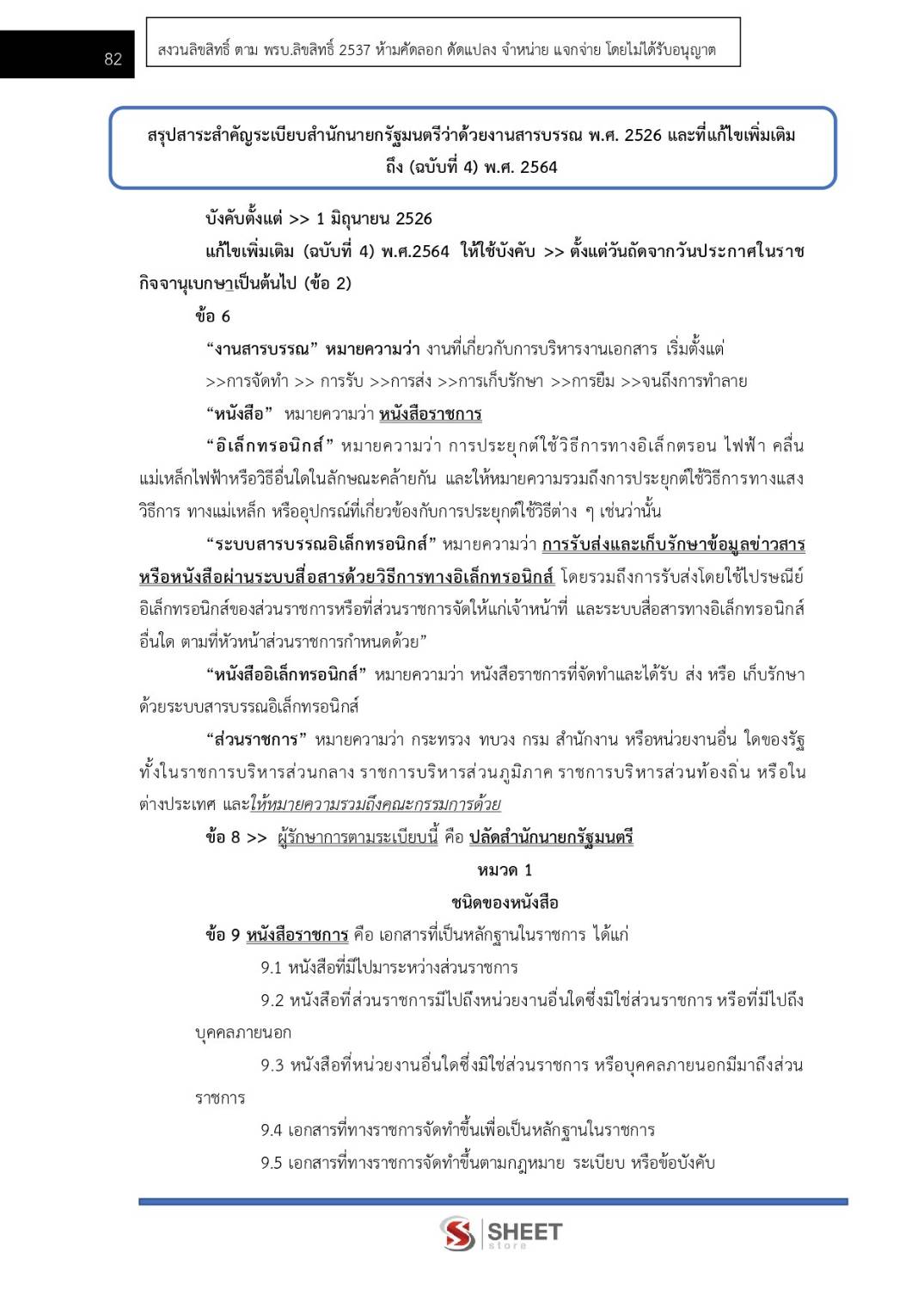 – แนวข้อสอบสรุปสาระสำคัญระเบียบสำนักนายกรัฐมนตรีว่าด้วยงานสารบรรณ พ.ศ. 2526 และที่แก้ไขเพิ่มเติมถึง (ฉบับที่ 4) พ.ศ. 2564