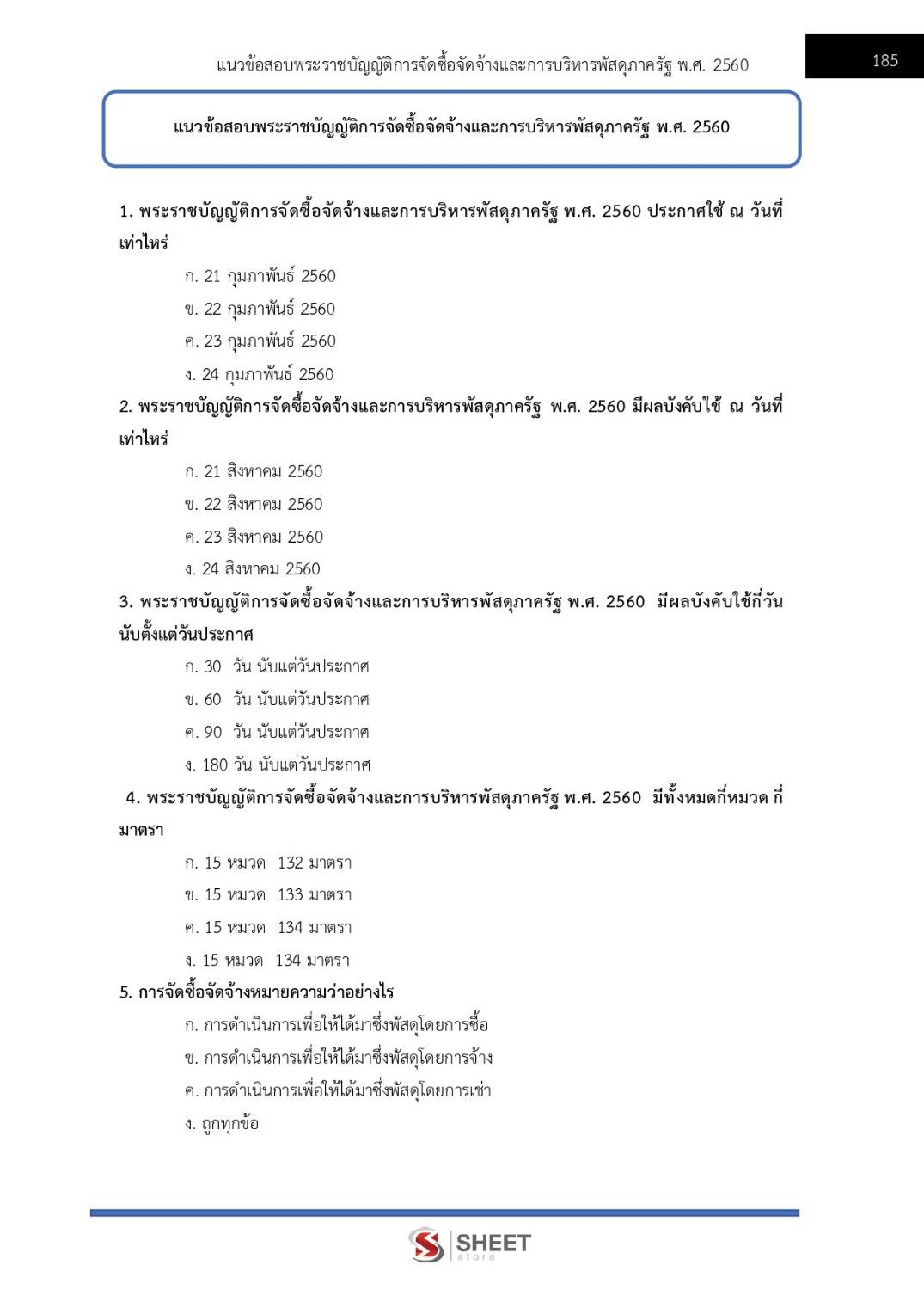 – แนวข้อสอบสรุปสาระสำคัญพระราชบัญญัติการจัดซื้อจัดจ้างและการบริหารพัสดุภาครัฐ พ.ศ. 2560