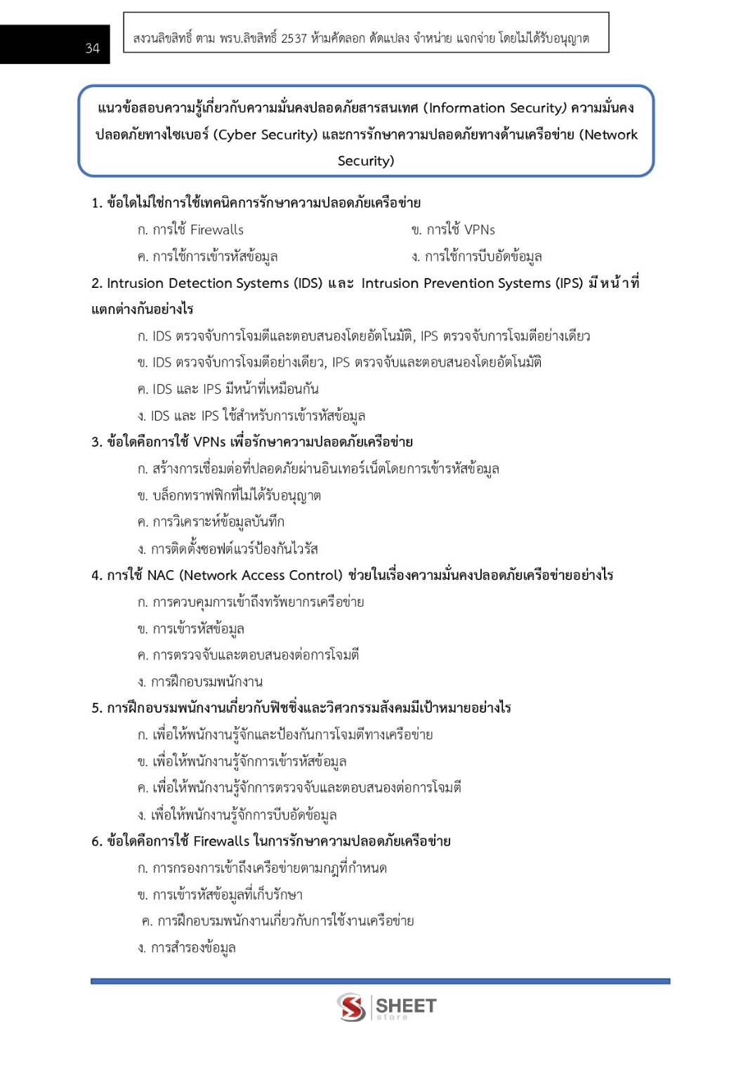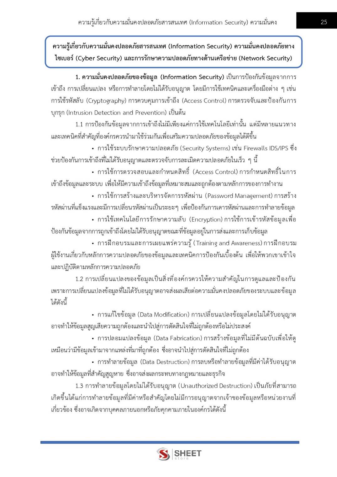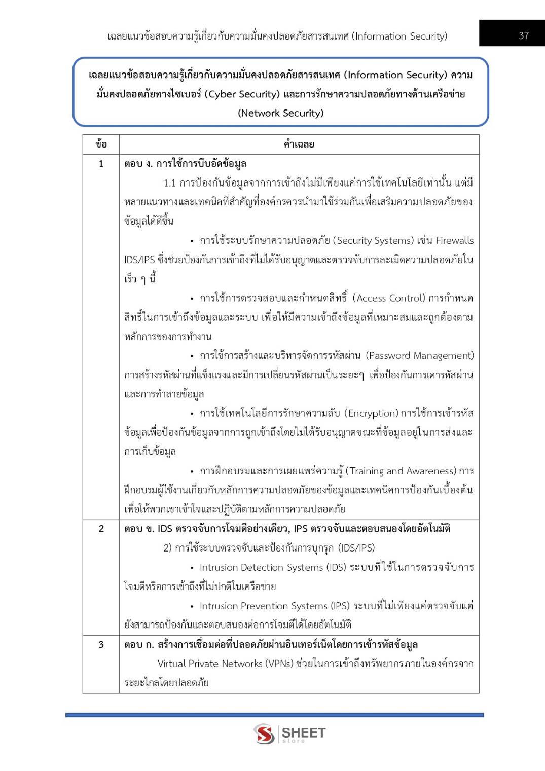 – แนวข้อสอบความรู้เกี่ยวกับความมั่นคงปลอดภัยสารสนเทศ (Information Security) ความมั่นคงปลอดภัยทางไซเบอร์ (Cyber Security) และการรักษาความปลอดภัยทางด้านเครือข่าย (Network Security)