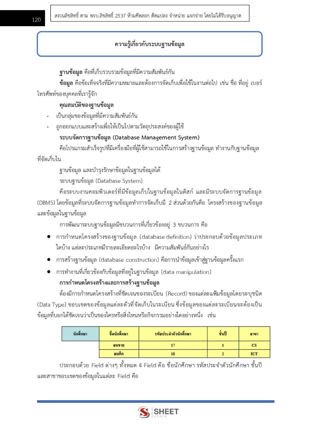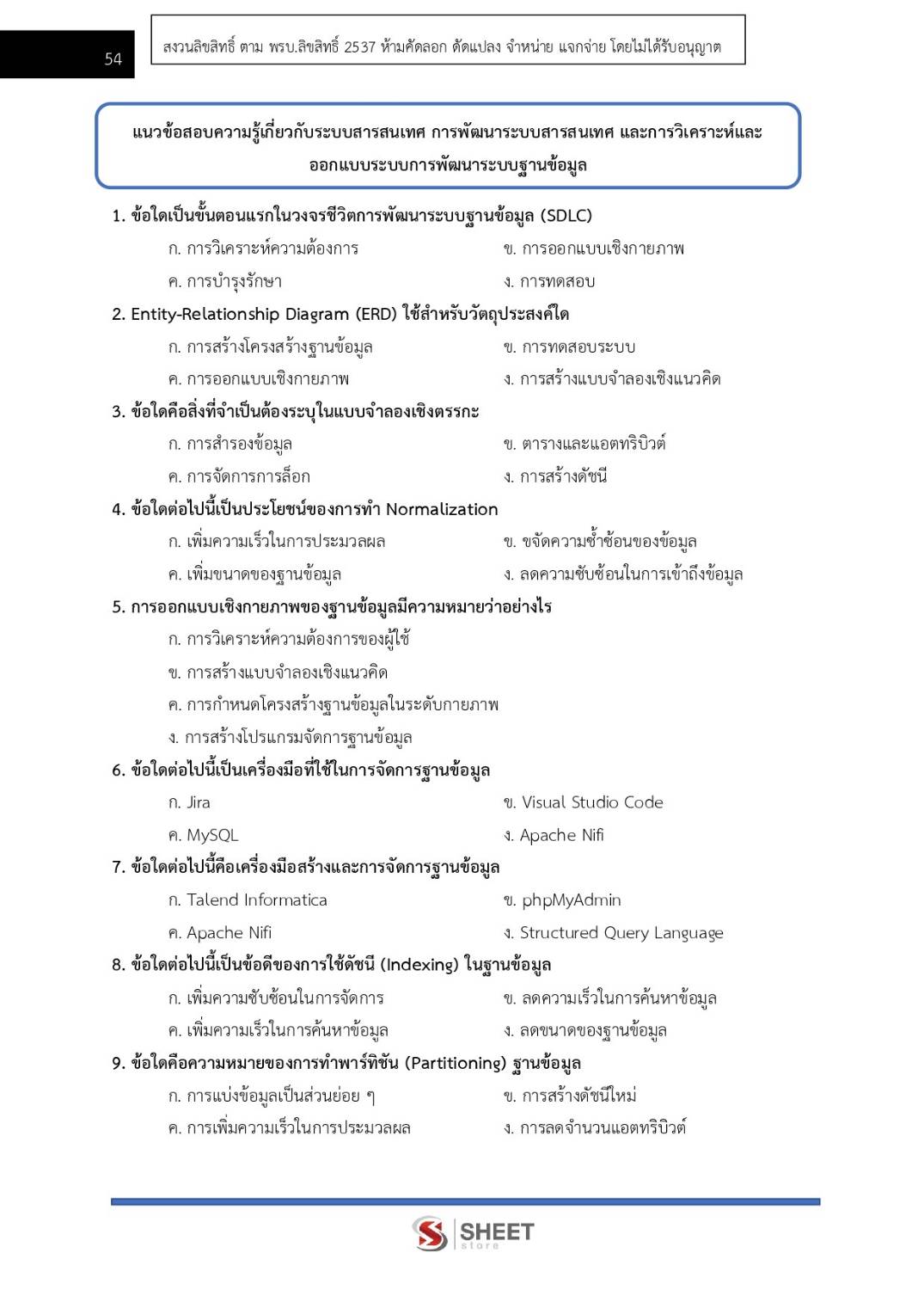 – แนวข้อสอบความรู้เกี่ยวกับระบบสารสนเทศ การพัฒนาระบบสารสนเทศ และการวิเคราะห์และออกแบบระบบการพัฒนาระบบฐานข้อมูล