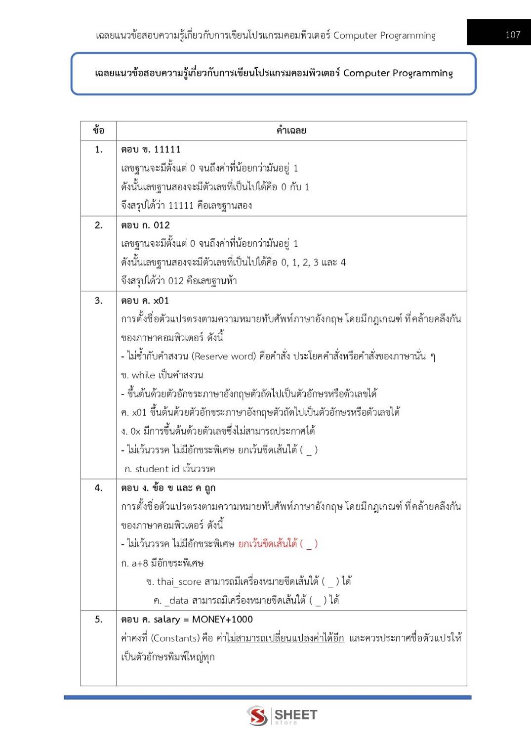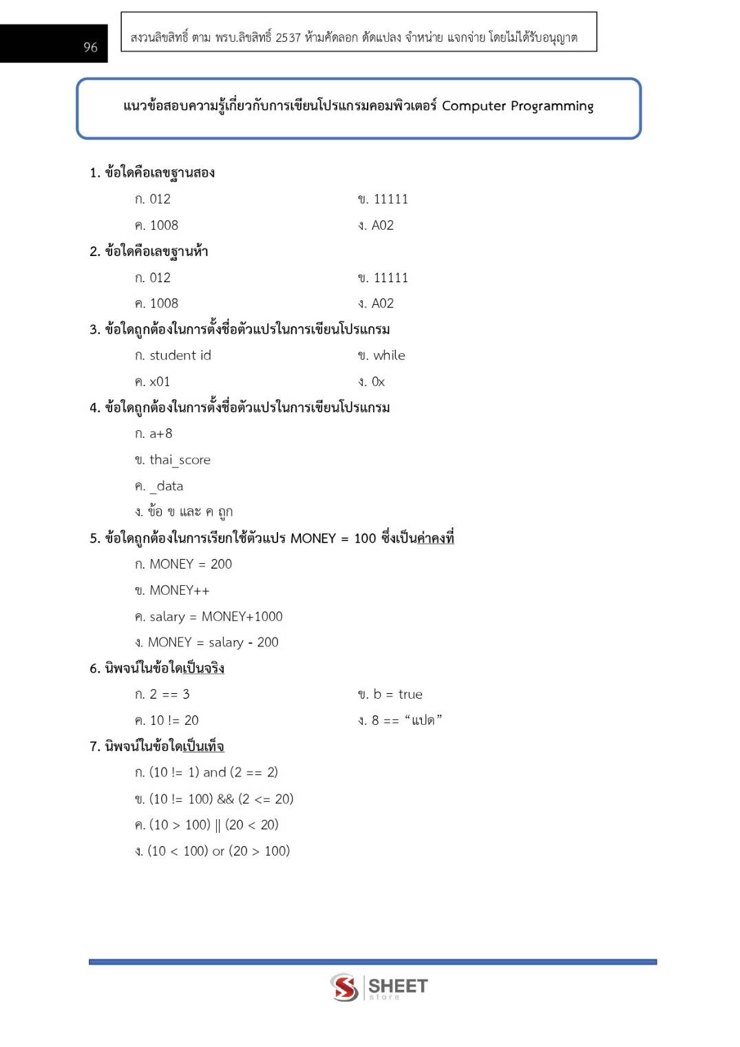 – แนวข้อสอบความรู้เกี่ยวกับการเขียนโปรแกรมคอมพิวเตอร์ Computer Programming