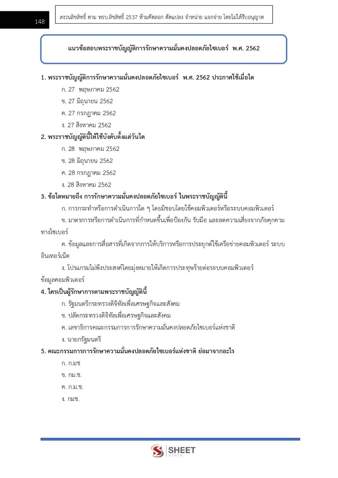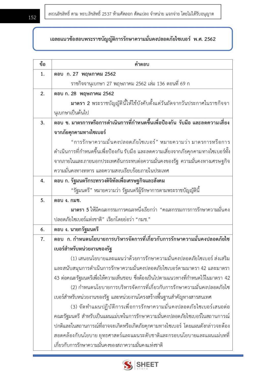 – แนวข้อสอบพระราชบัญญัติการรักษาความมั่นคงปลอดภัยไซเบอร์ พ.ศ. 2562
