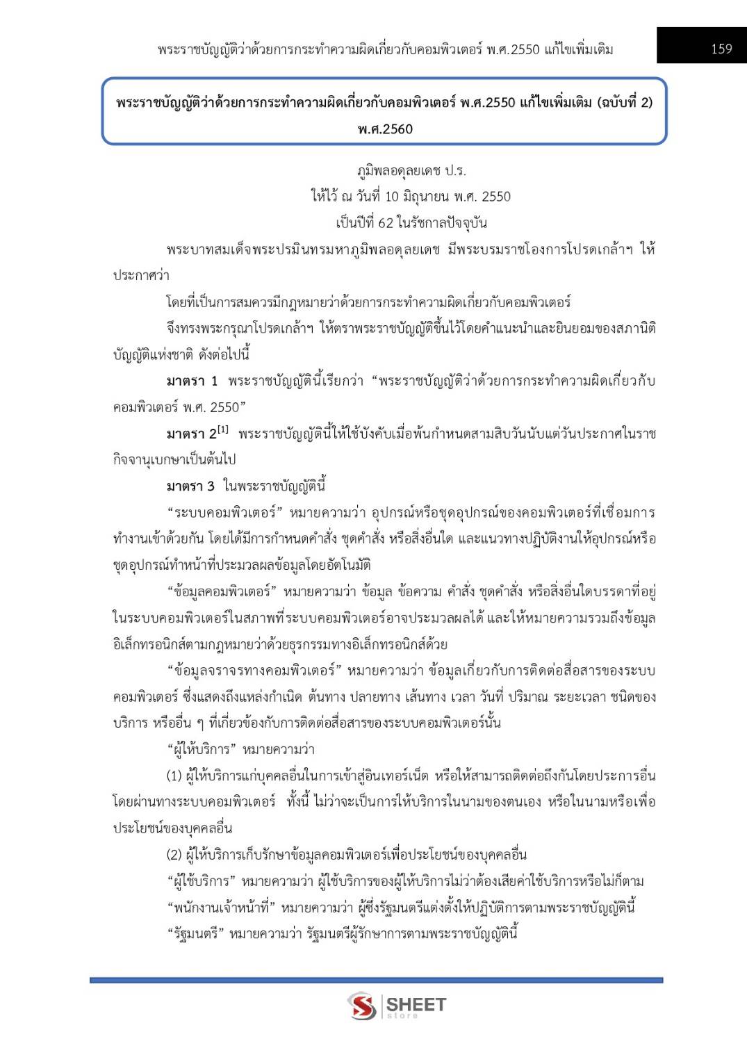 – แนวข้อสอบพระราชบัญญัติว่าด้วยการกระทำความผิดเกี่ยวกับคอมพิวเตอร์ พ.ศ. 2550 แก้ไขเพิ่มเติม (ฉบับที่ 2) พ.ศ. 2560