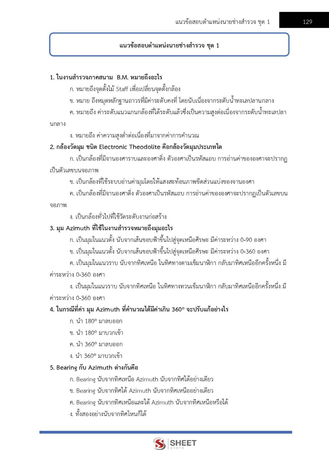 – แนวข้อสอบตำแหน่งนายช่างสำรวจปฏิบัติงาน ชุด 1