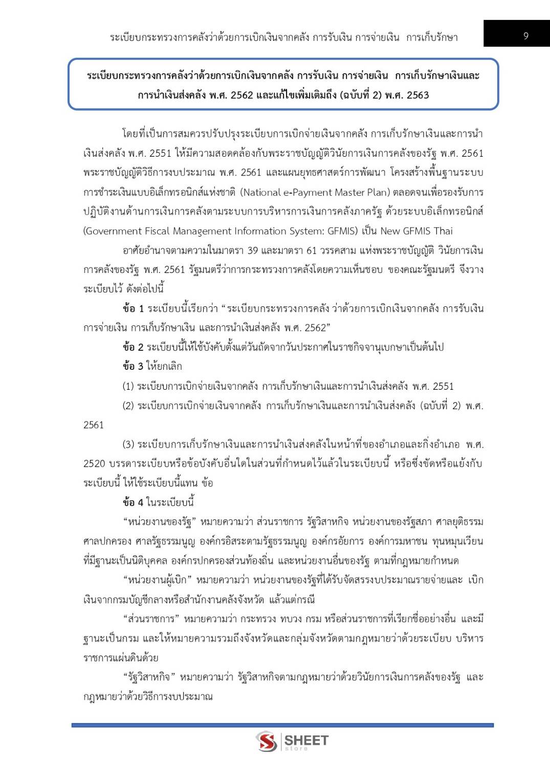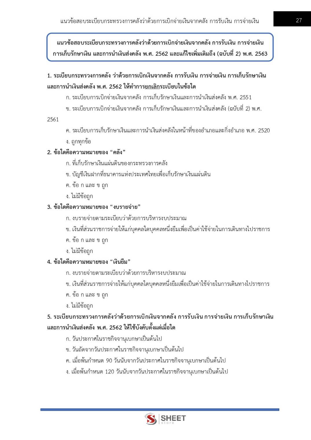 – แนวข้อสอบระเบียบกระทรวงการคลังว่าด้วยการเบิกเงินจากคลัง การรับเงิน การจ่ายเงิน การเก็บรักษาเงินและการนำเงินส่งคลัง พ.ศ. 2562 และแก้ไขเพิ่มเติมถึง (ฉบับที่ 2) พ.ศ. 2563