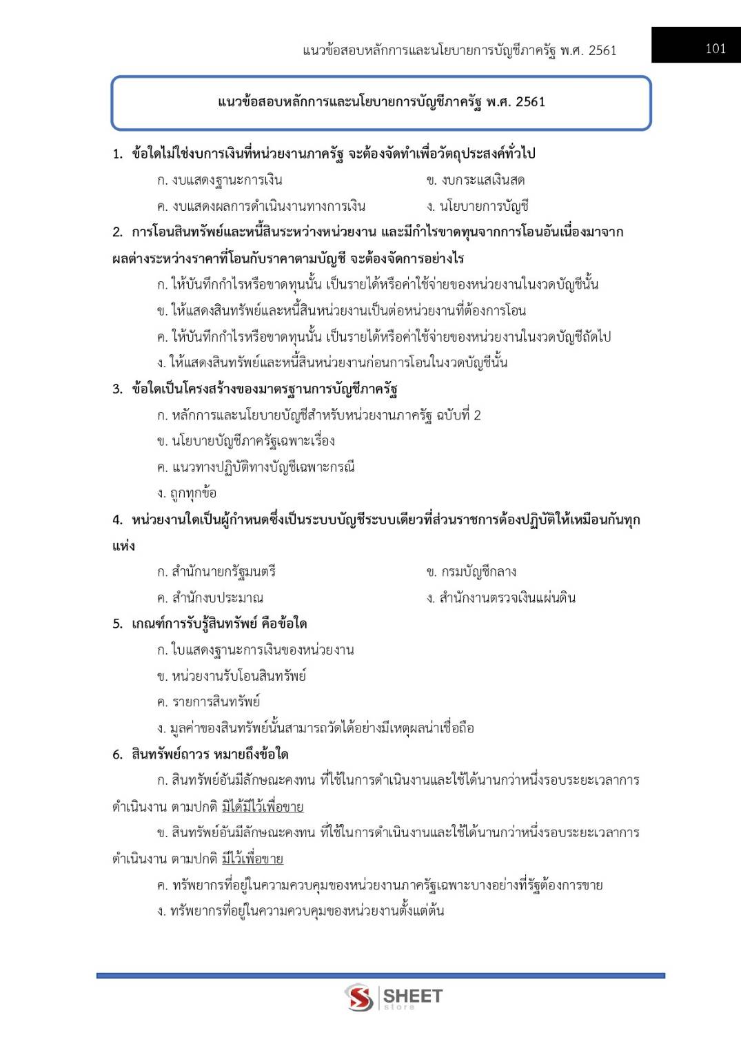 – แนวข้อสอบสรุปหลักการและนโยบายการบัญชีภาครัฐ พ.ศ. 2561
