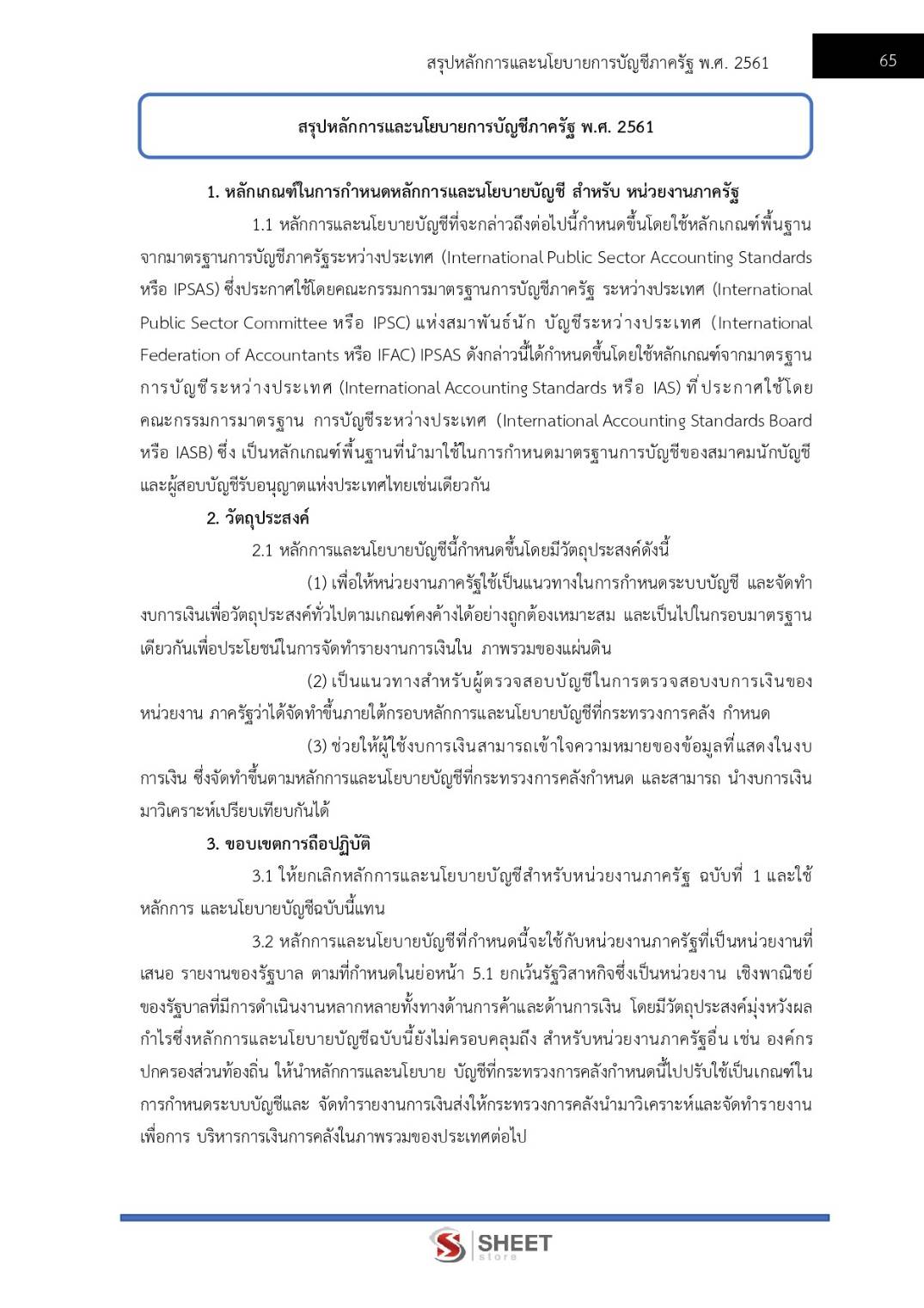 – สรุปหลักการและนโยบายการบัญชีภาครัฐ พ.ศ. 2561