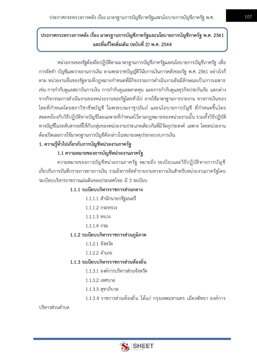 – มาตรฐานการบัญชีภาครัฐและนโยบายการบัญชีภาครัฐ พ.ศ. 2561 และที่แก้ไขเพิ่มเติม (ฉบับที่ 2) พ.ศ. 2564