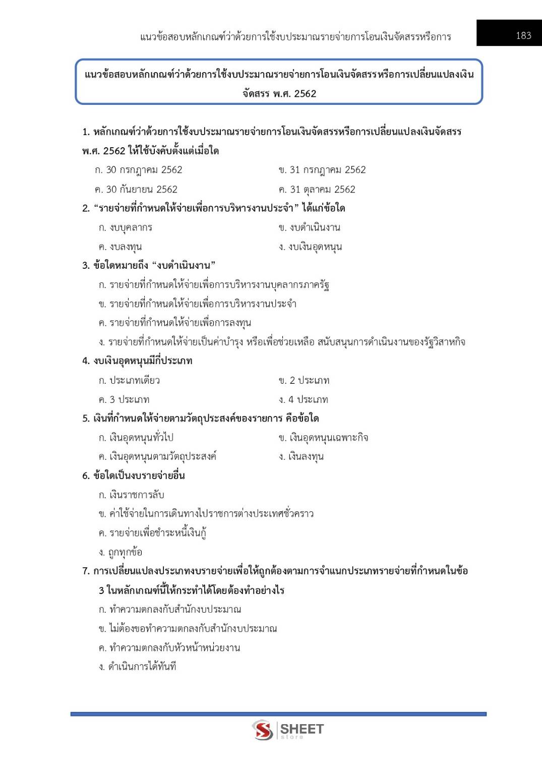 – แนวข้อสอบหลักเกณฑ์ว่าด้วยการใช้งบประมาณรายจ่าย การโอนเงินจัดสรรหรือการเปลี่ยนแปลงเงินจัดสรร พ.ศ. 2562
