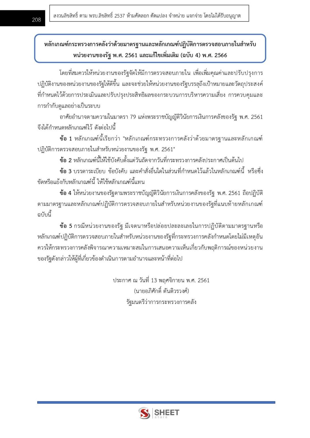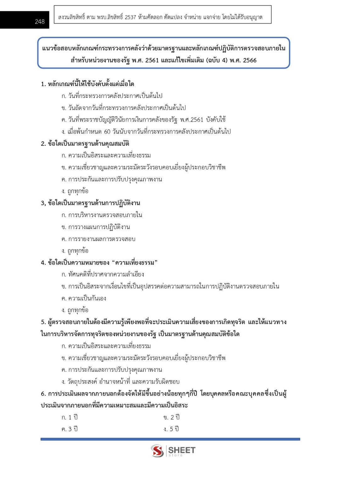 – แนวข้อสอบหลักเกณฑ์กระทรวงการคลังว่าด้วยมาตรฐานและหลักเกณฑ์ปฏิบัติการตรวจสอบภายในสำหรับหน่วยงานของรัฐ พ.ศ. 2561 และแก้ไขเพิ่มเติม (ฉบับ 4) พ.ศ. 2566