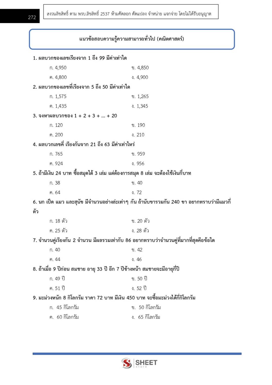 – แนวข้อสอบความรู้ความสามารถทั่วไป (คณิตศาสตร์)