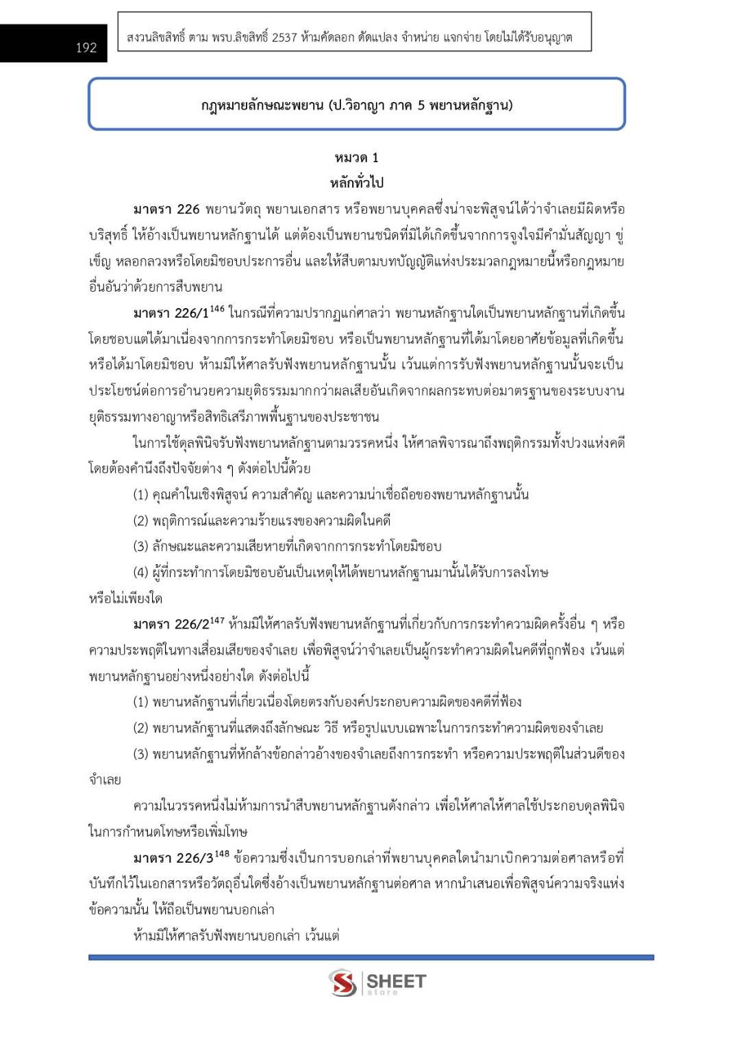 – กฎหมายลักษณะพยาน (ป.วิอาญา ภาค 5 พยานหลักฐาน)