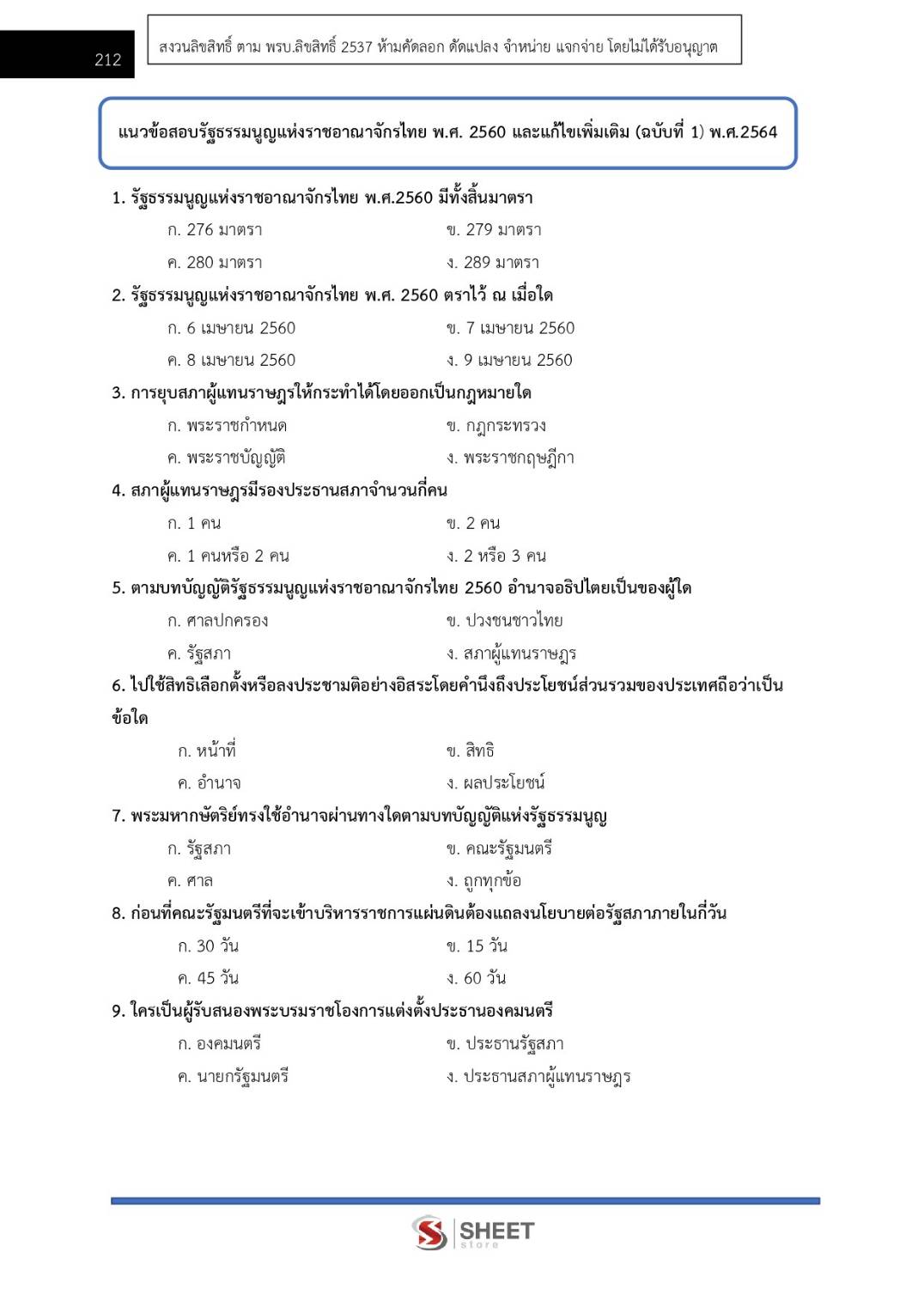 – แนวข้อสอบสรุปสาระสำคัญรัฐธรรมนูญแห่งราชอาณาจักรไทย พ.ศ. 2560 และที่แก้ไขเพิ่มเติม (ฉบับที่ 1) พ.ศ. 2564