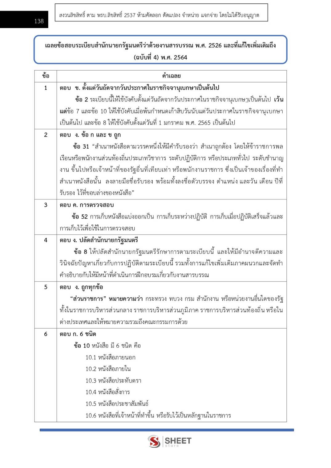 – แนวข้อสอบสรุปสาระสำคัญระเบียบสำนักนายกรัฐมนตรีว่าด้วยงานสารบรรณ พ.ศ. 2526 และที่แก้ไขเพิ่มเติมถึง (ฉบับที่ 4) พ.ศ. 2564