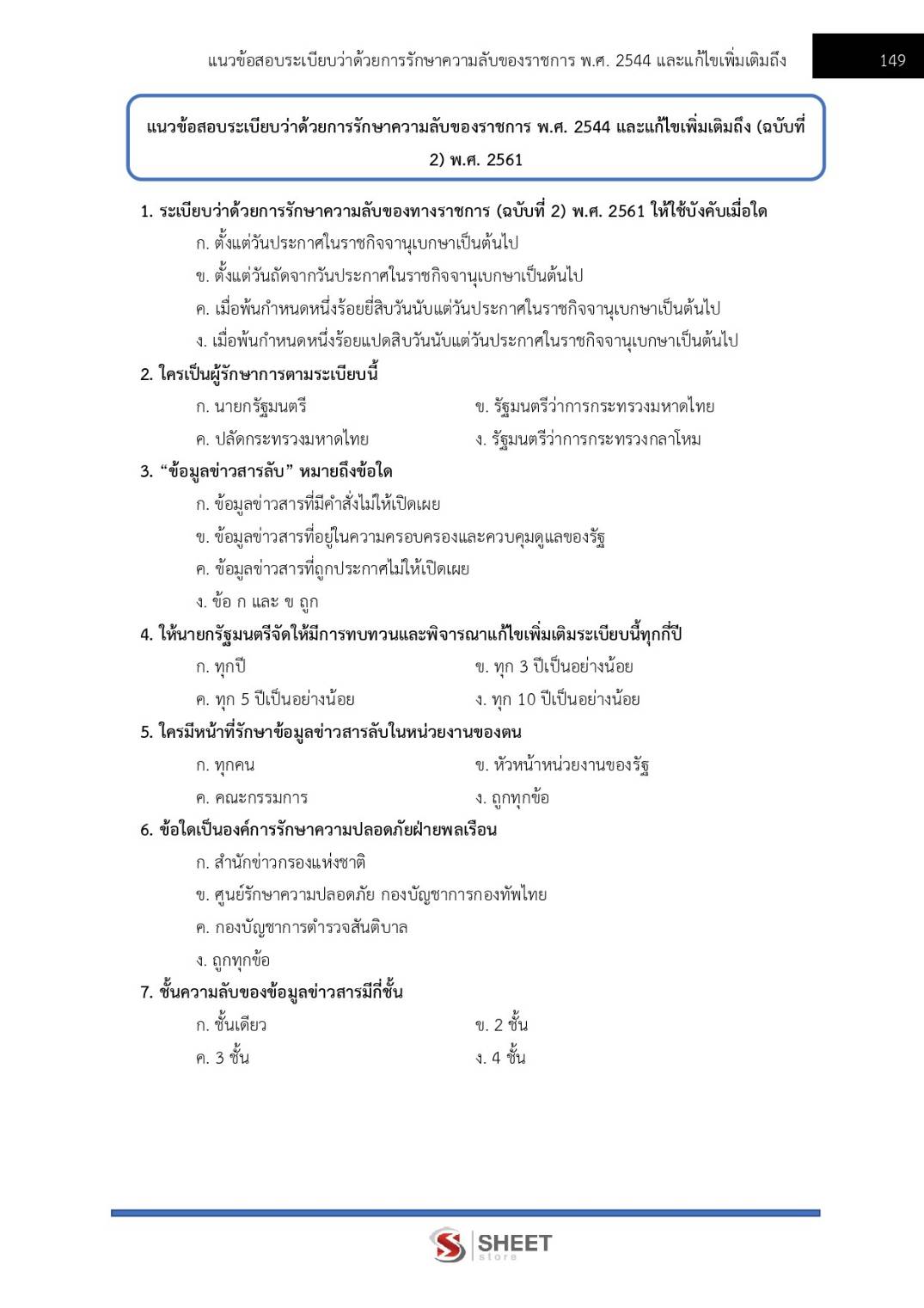 – แนวข้อสอบสรุปสาระสำคัญระเบียบว่าด้วยการรักษาความลับของราชการ พ.ศ. 2544 และแก้ไขเพิ่มเติม (ฉบับที่ 2) พ.ศ. 2561
