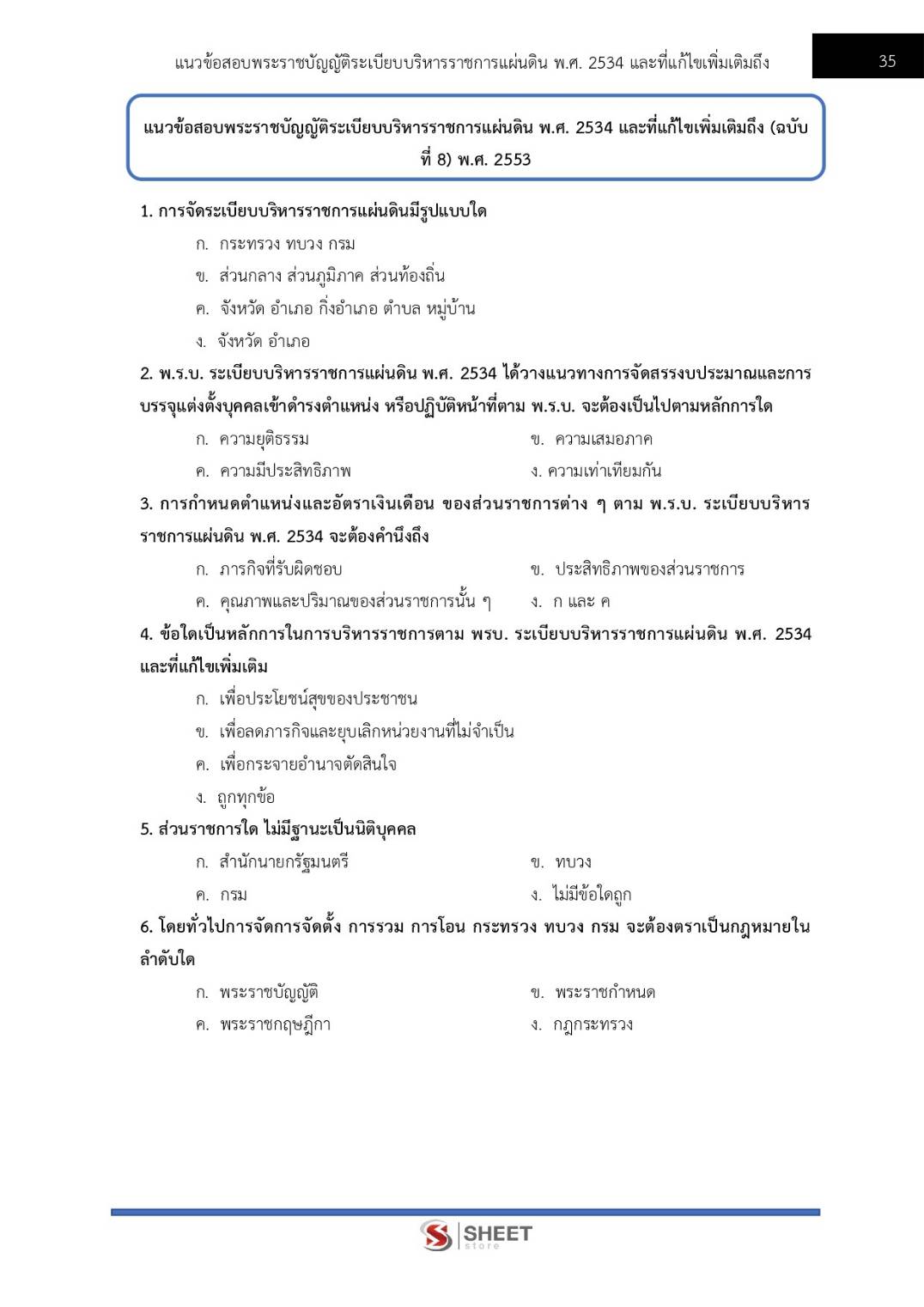 – แนวข้อสอบพระราชบัญญัติระเบียบบริหารราชการแผ่นดิน พ.ศ.2534 และที่แก้ไขเพิ่มเติมถึง (ฉบับที่ 8) พ.ศ.2553