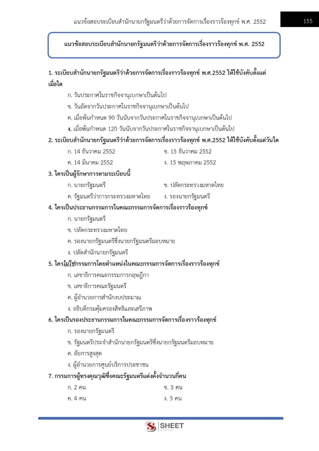 – แนวข้อสอบระเบียบสำนักนายกรัฐมนตรีว่าด้วยการจัดการเรื่องราวร้องทุกข์ พ.ศ.2552