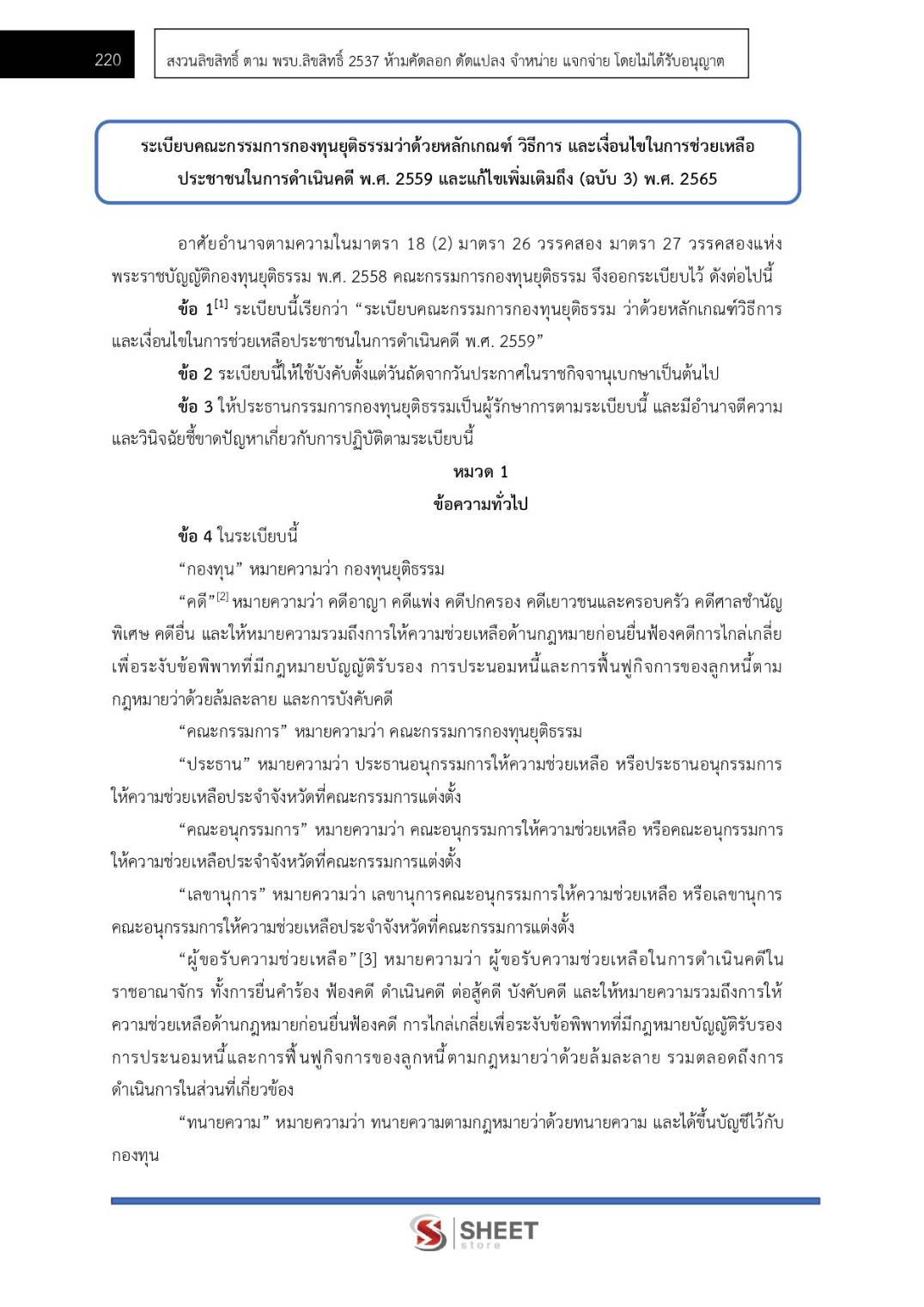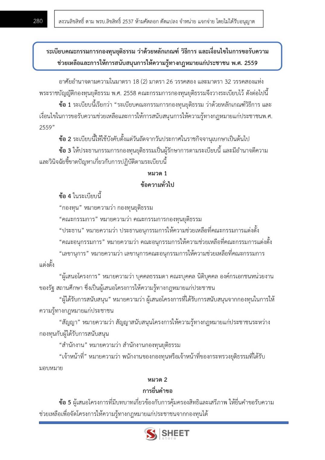 – แนวข้อสอบระเบียบคณะกรรมการกองทุนยุติธรรมว่าด้วยหลักเกณฑ์ วิธีการ และเงื่อนไขในการขอรับความช่วยเหลือและการให้การสนับสนุนการให้ความรู้ทางกฎหมายแก่ประชาชน พ.ศ.2559