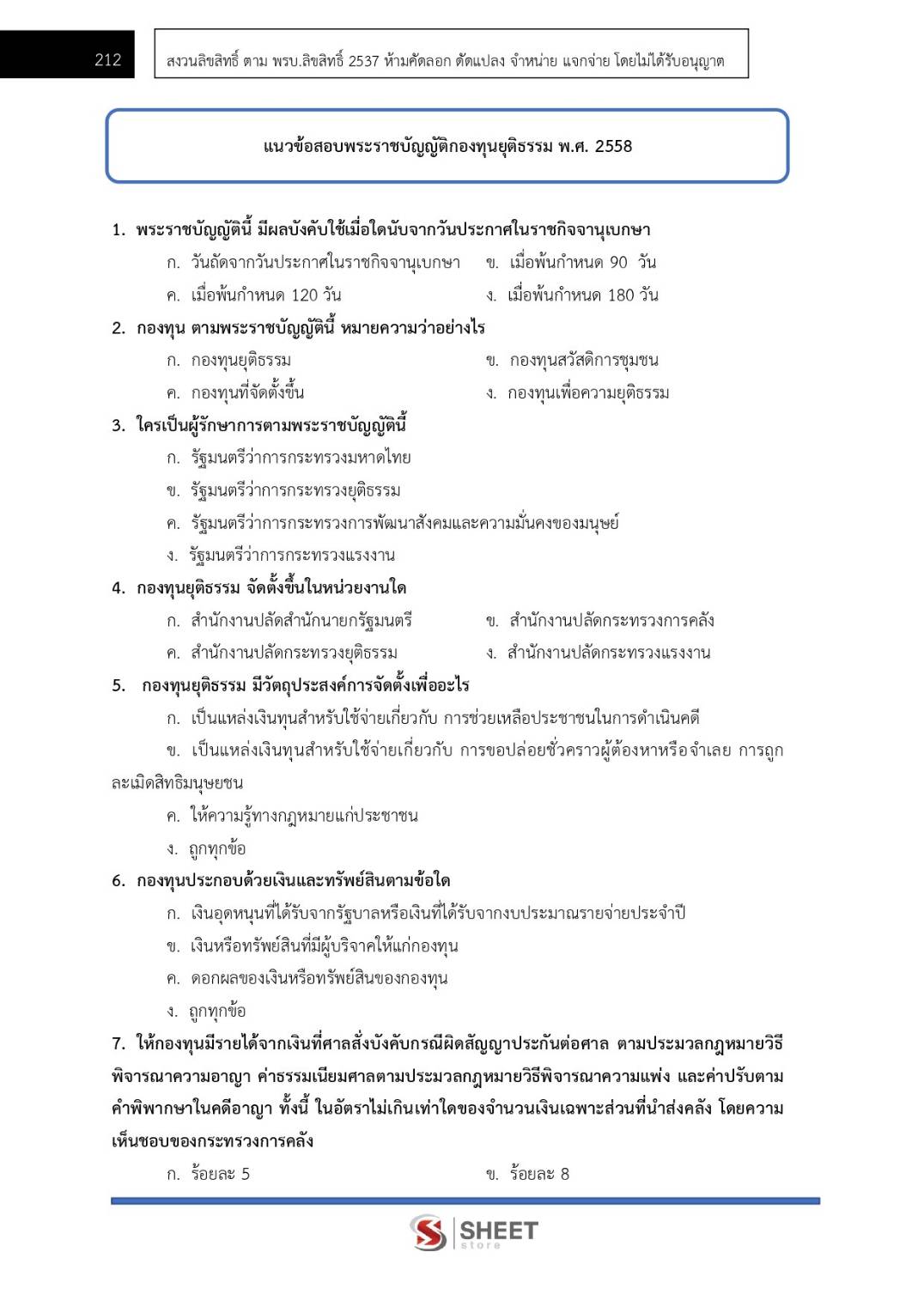 – แนวข้อสอบพระราชบัญญัติกองทุนยุติธรรม พ.ศ.2558