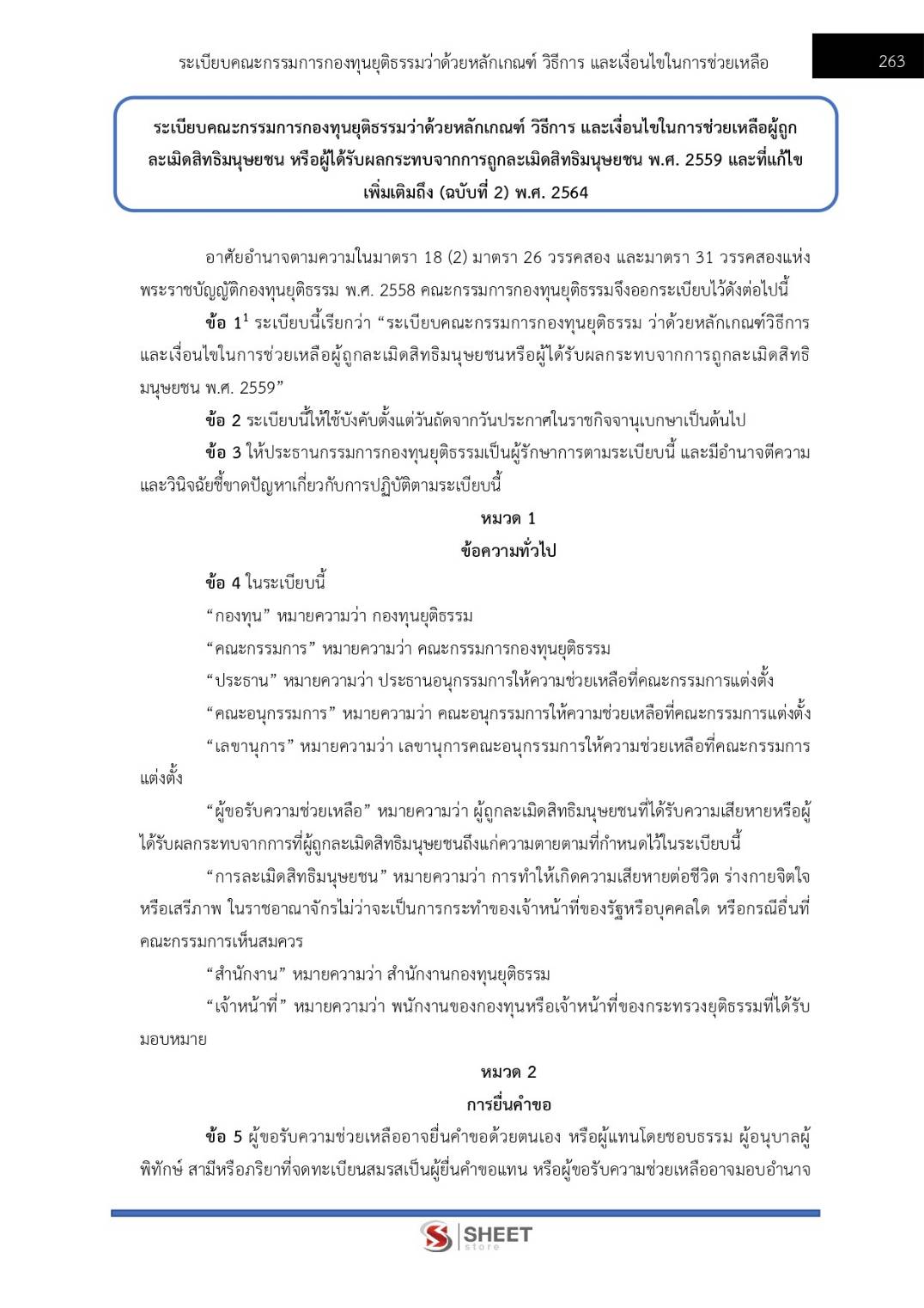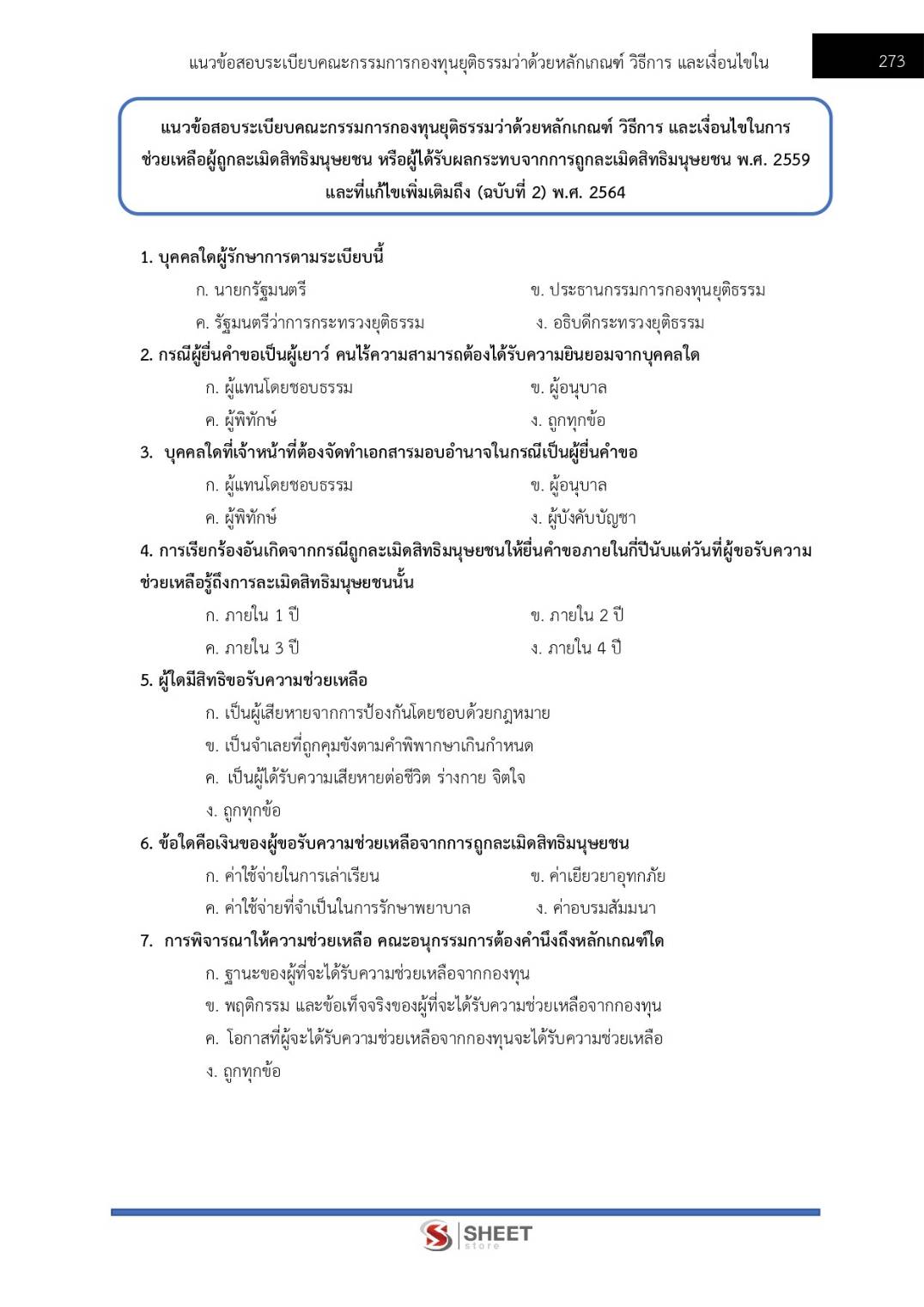 – แนวข้อสอบระเบียบคณะกรรมการกองทุนยุติธรรมว่าด้วยหลักเกณฑ์ วิธีการ และเงื่อนไขในการช่วยเหลือผู้ถูกละเมิดสิทธิมนุษยชน หรือผู้ได้รับผลกระทบจากการถูกละเมิดสิทธิมนุษยชน พ.ศ.2559 และที่แก้ไขเพิ่มเติม