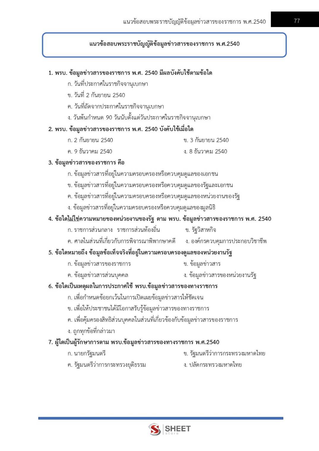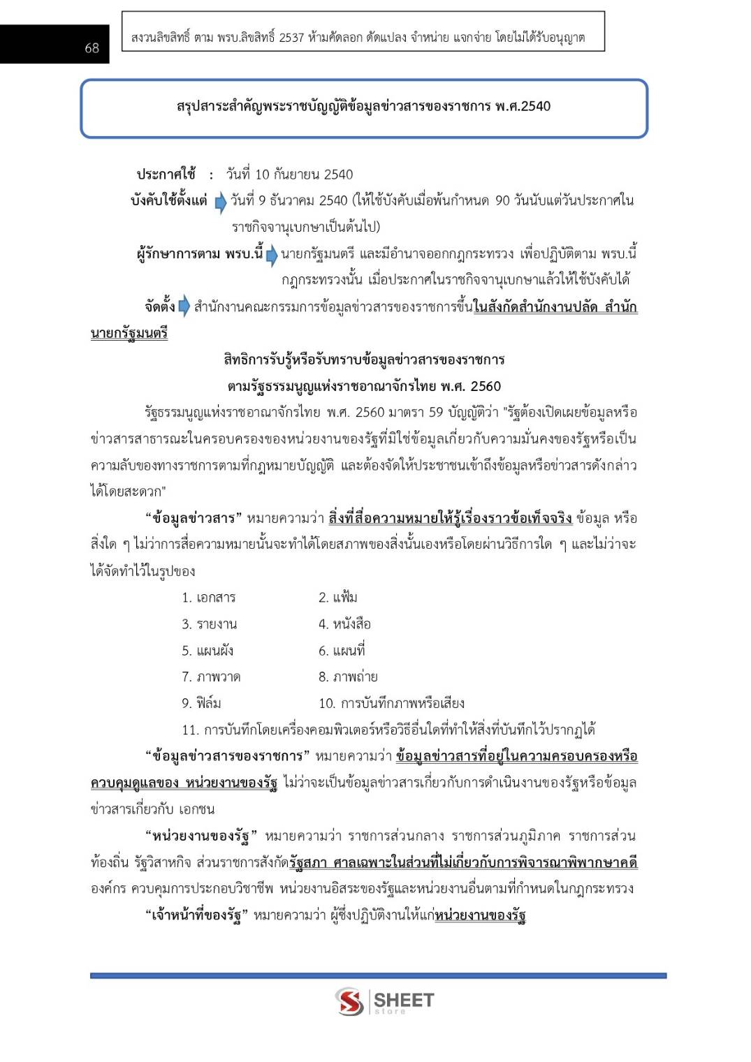 – แนวข้อสอบสรุปสาระสำคัญพระราชบัญญัติข้อมูลข่าวสารของราชการ พ.ศ. 2540