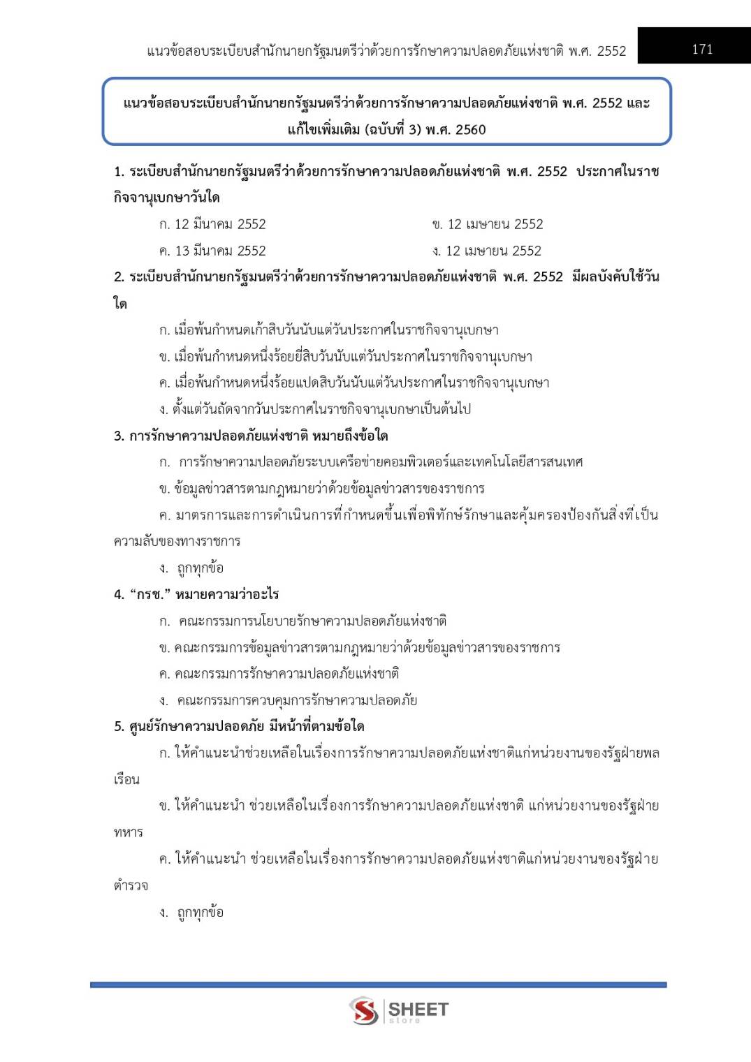 – แนวข้อสอบระเบียบสำนักนายกรัฐมนตรีว่าด้วยการรักษาความปลอดภัยแห่งชาติ พ.ศ. 2552 และแก้ไขเพิ่มเติม (ฉบับที่ 3) พ.ศ. 2560