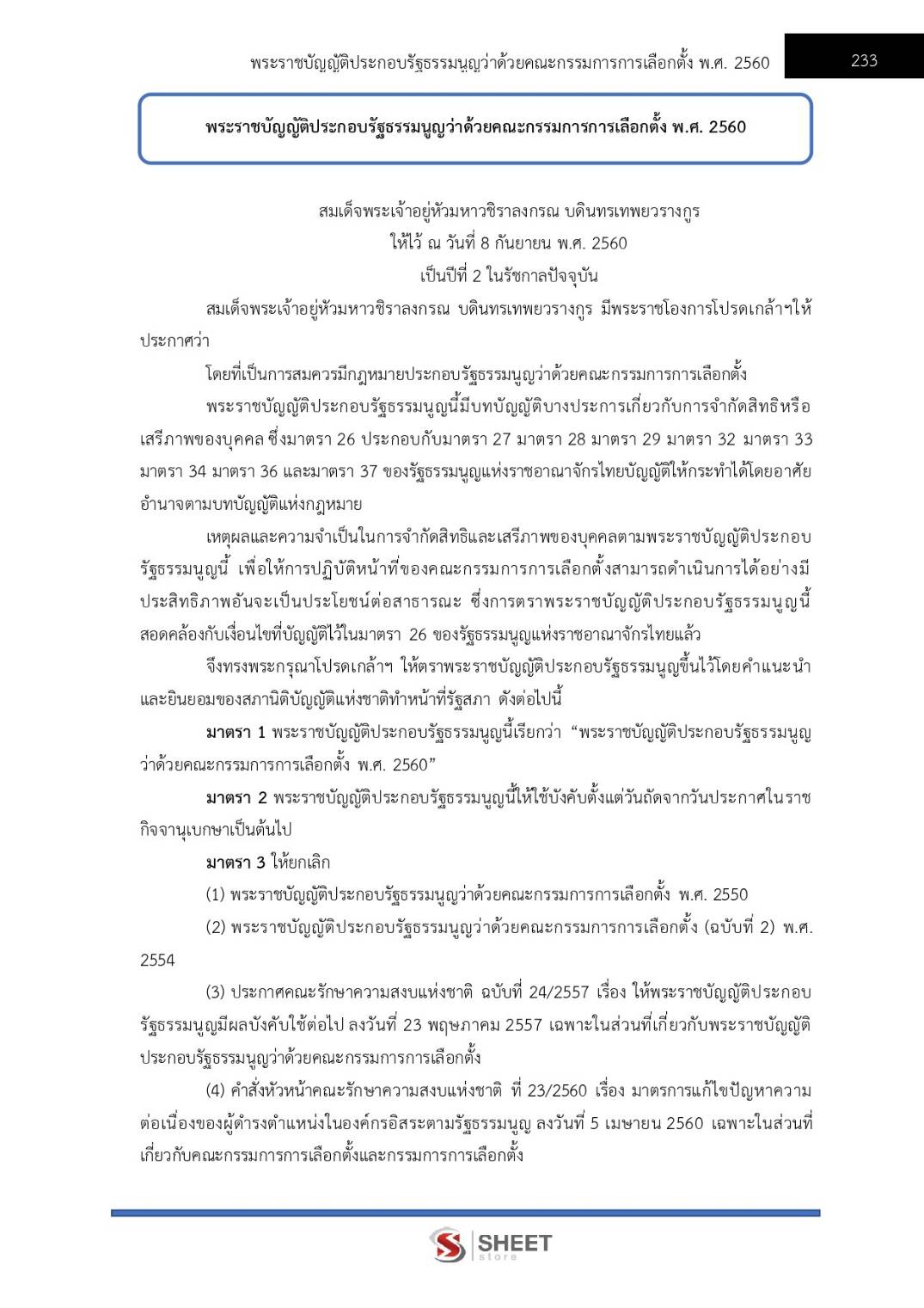 – แนวข้อสอบพระราชบัญญัติประกอบรัฐธรรมนูญว่าด้วยคณะกรรมการการเลือกตั้ง พ.ศ. 2560