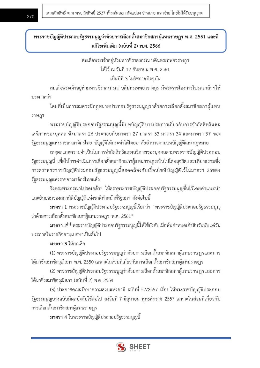 – แนวข้อสอบพระราชบัญญัติประกอบรัฐธรรมนูญว่าด้วยการเลือกตั้งสมาชิกสภาผู้แทนราษฎร พ.ศ. 2561 และที่แก้ไขเพิ่มเติม (ฉบับที่ 2) พ.ศ. 2566