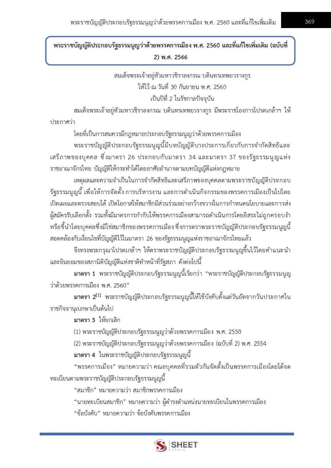 – แนวข้อสอบพระราชบัญญัติประกอบรัฐธรรมนูญว่าด้วยพรรคการเมือง พ.ศ. 2560 และที่แก้ไขเพิ่มเติม (ฉบับที่ 2) พ.ศ. 2566