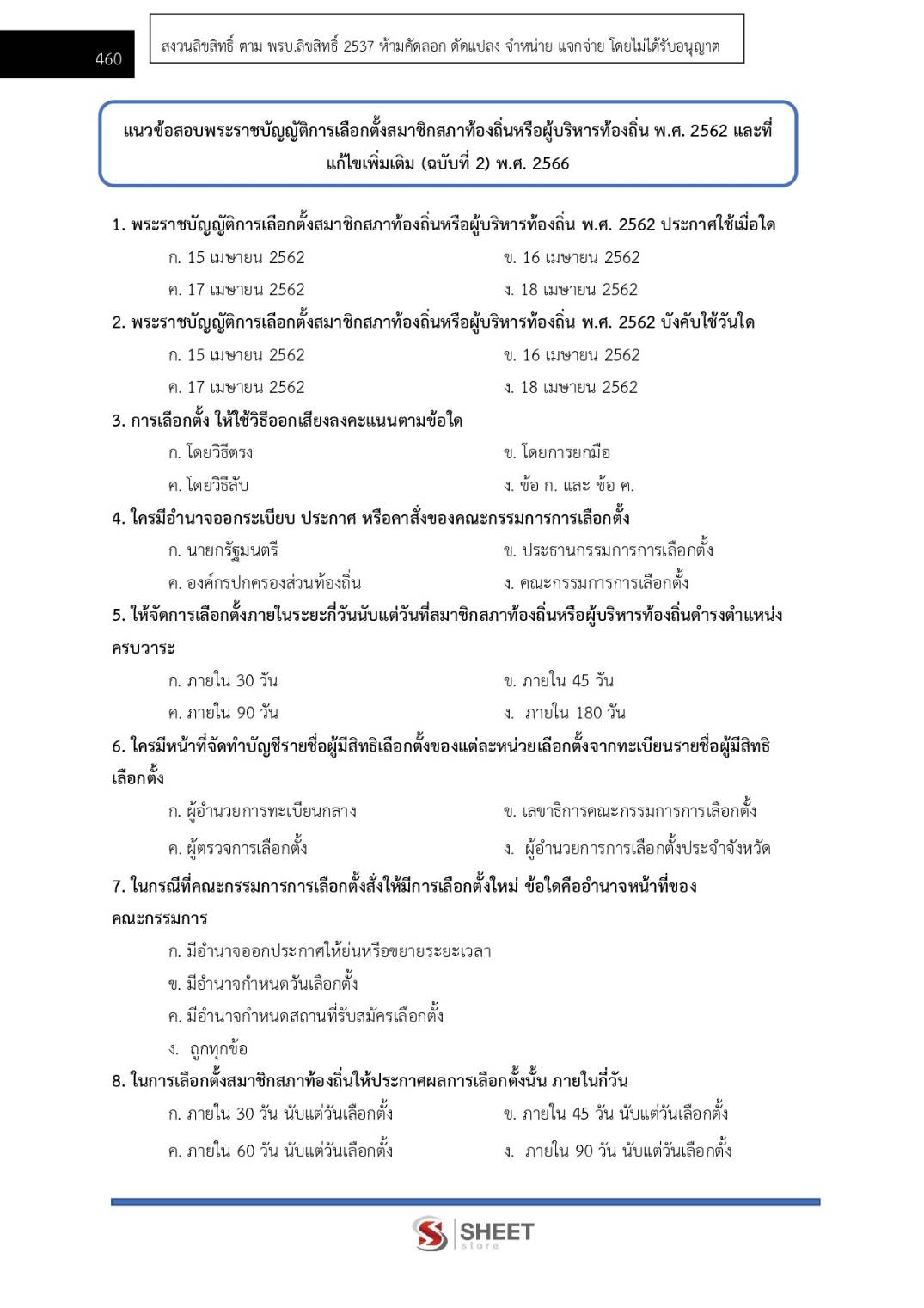 – แนวข้อสอบพระราชบัญญัติการเลือกตั้งสมาชิกสภาท้องถิ่นหรือผู้บริหารท้องถิ่น พ.ศ. 2562 และที่แก้ไขเพิ่มเติม (ฉบับที่ 2) พ.ศ. 2566