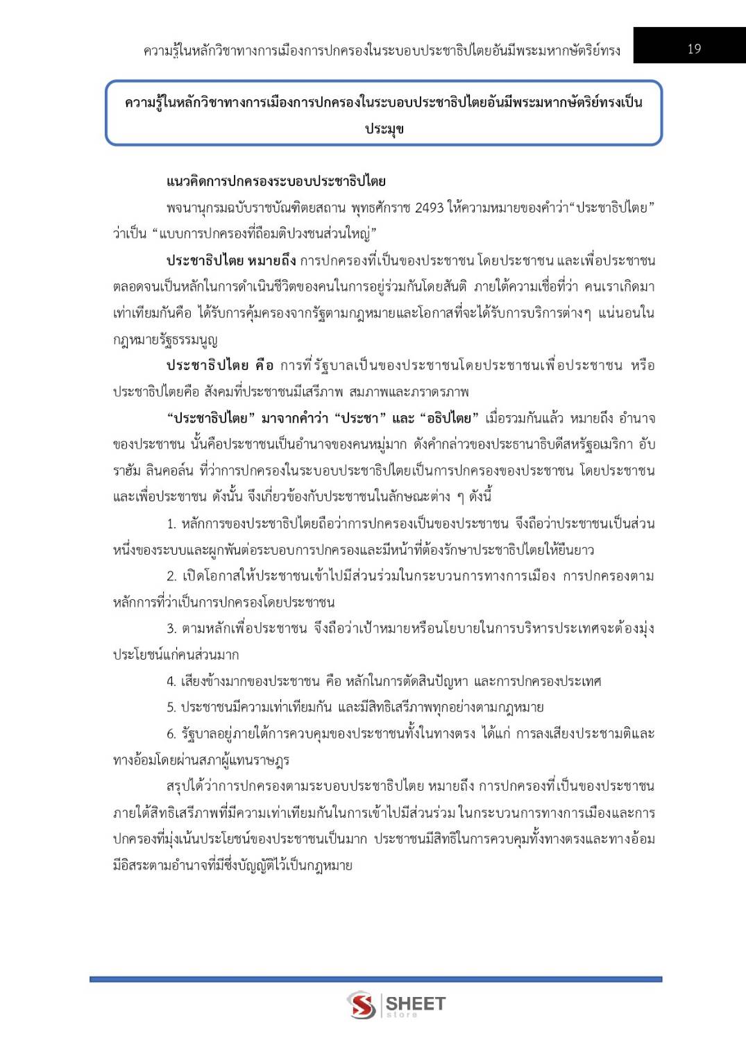 – ความรู้ในหลักวิชาทางการเมืองการปกครองในระบอบประชาธิปไตยอันมีพระมหากษัตริย์ทรงเป็นประมุข