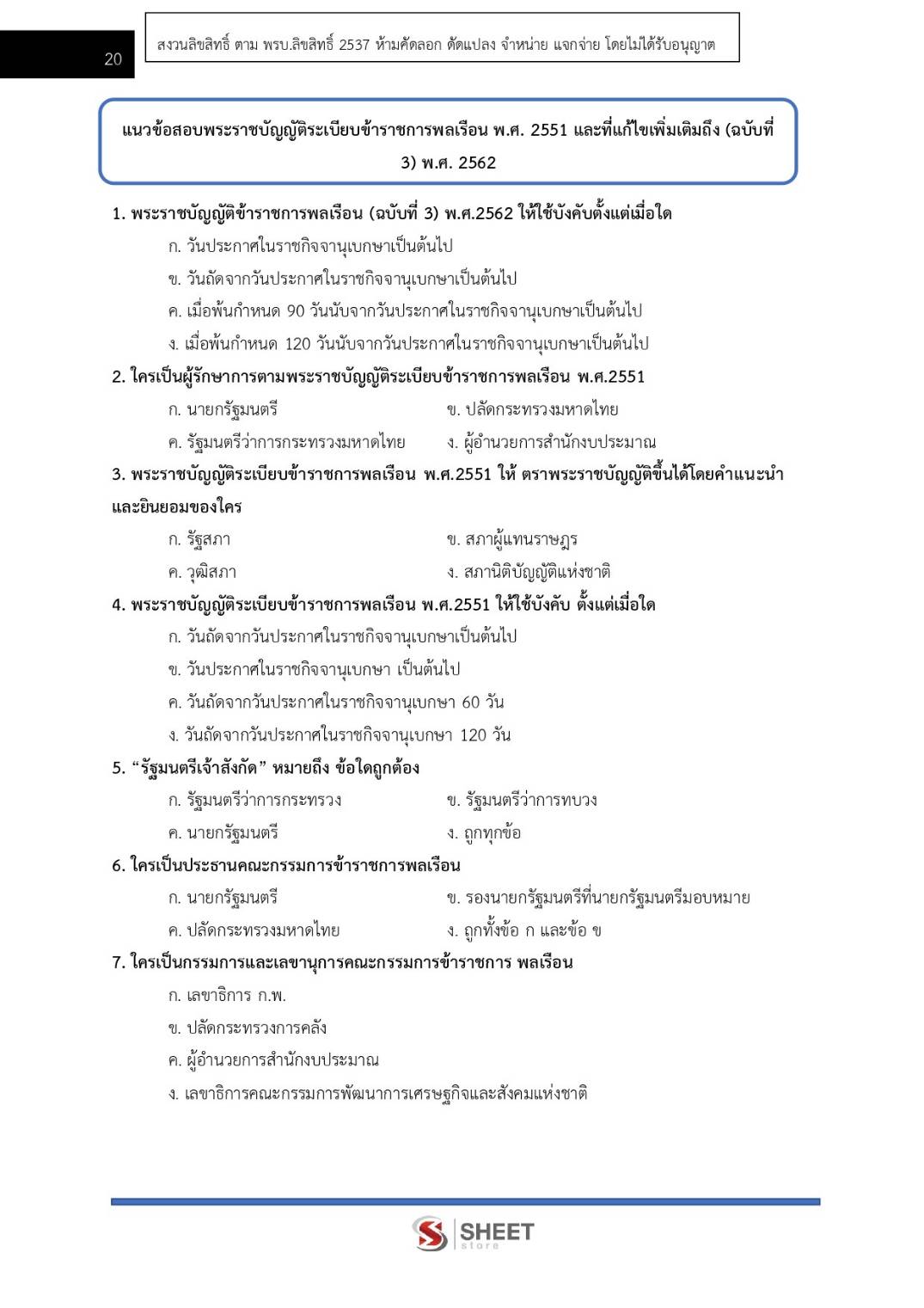 – แนวข้อสอบสรุปสาระสำคัญพระราชบัญญัติระเบียบข้าราชการพลเรือน พ.ศ. 2551 และที่แก้ไขเพิ่มเติมถึง (ฉบับที่ 3) พ.ศ. 2562