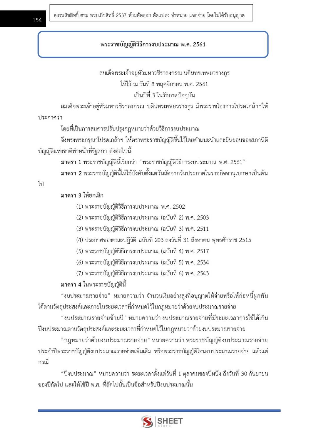 – แนวข้อสอบพระราชบัญญัติวิธีการงบประมาณ พ.ศ. 2561