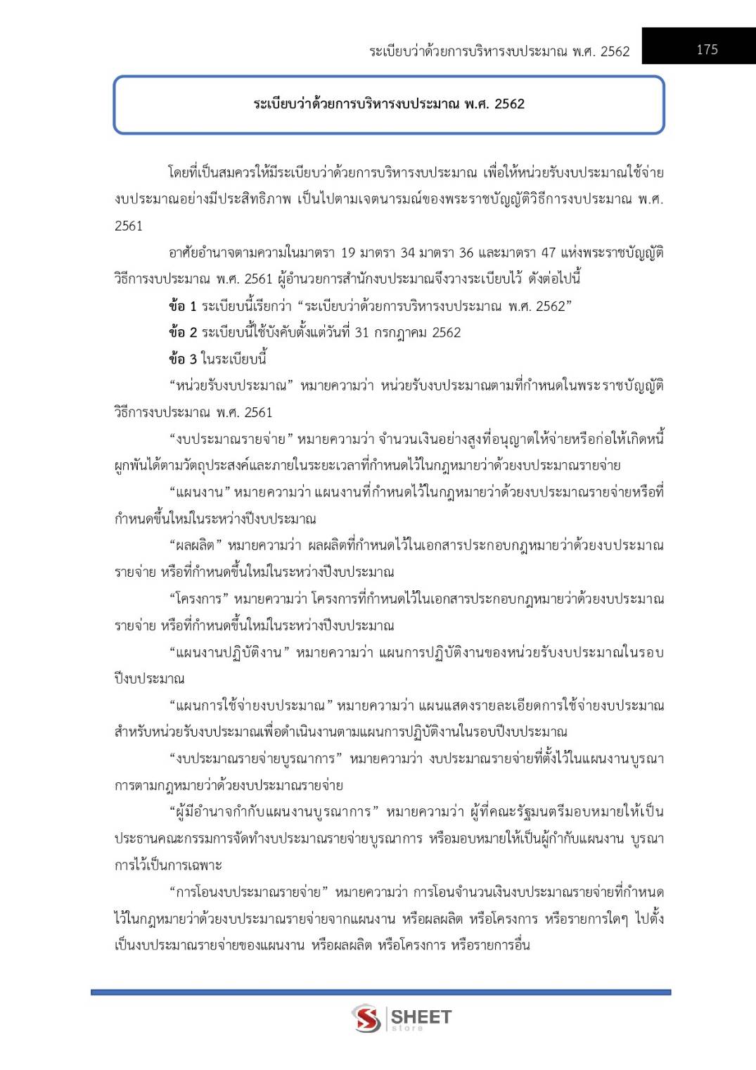 – ระเบียบว่าด้วยการบริหารงบประมาณ พ.ศ. 2562