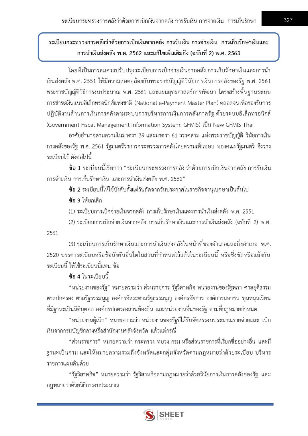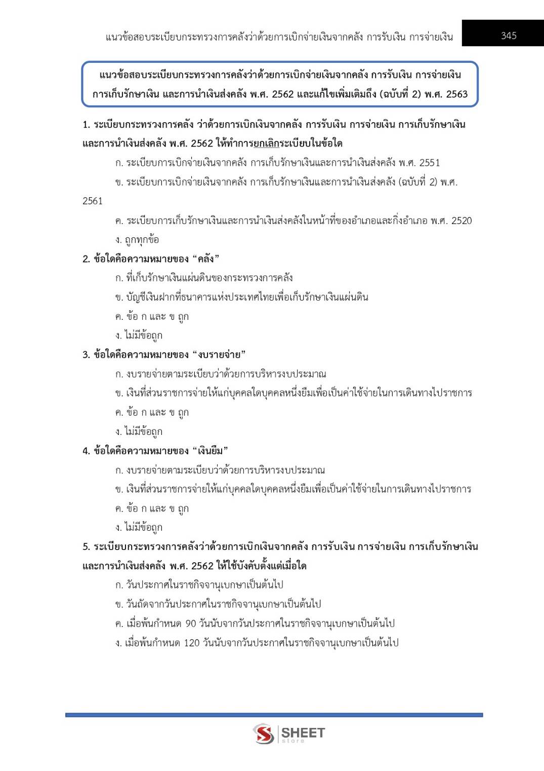 – แนวข้อสอบระเบียบกระทรวงการคลังว่าด้วยการเบิกเงินจากคลัง การรับเงิน การจ่ายเงิน การเก็บรักษาเงินและการนำเงินส่งคลัง พ.ศ. 2562 และที่แก้ไขเพิ่มเติมถึง (ฉบับที่ 2) พ.ศ. 2563