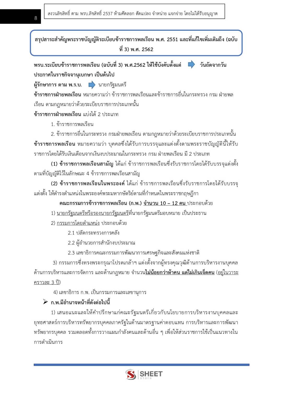 – แนวข้อสอบสรุปสาระสำคัญพระราชบัญญัติระเบียบข้าราชการพลเรือน พ.ศ. 2551 และที่แก้ไขเพิ่มเติมถึง (ฉบับที่ 3) พ.ศ. 2562