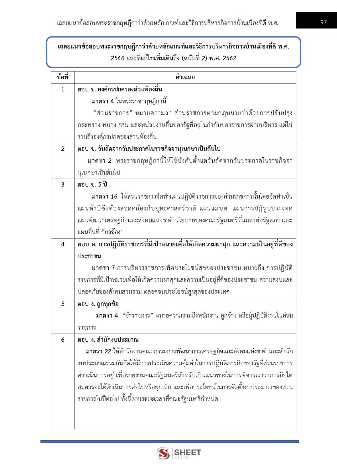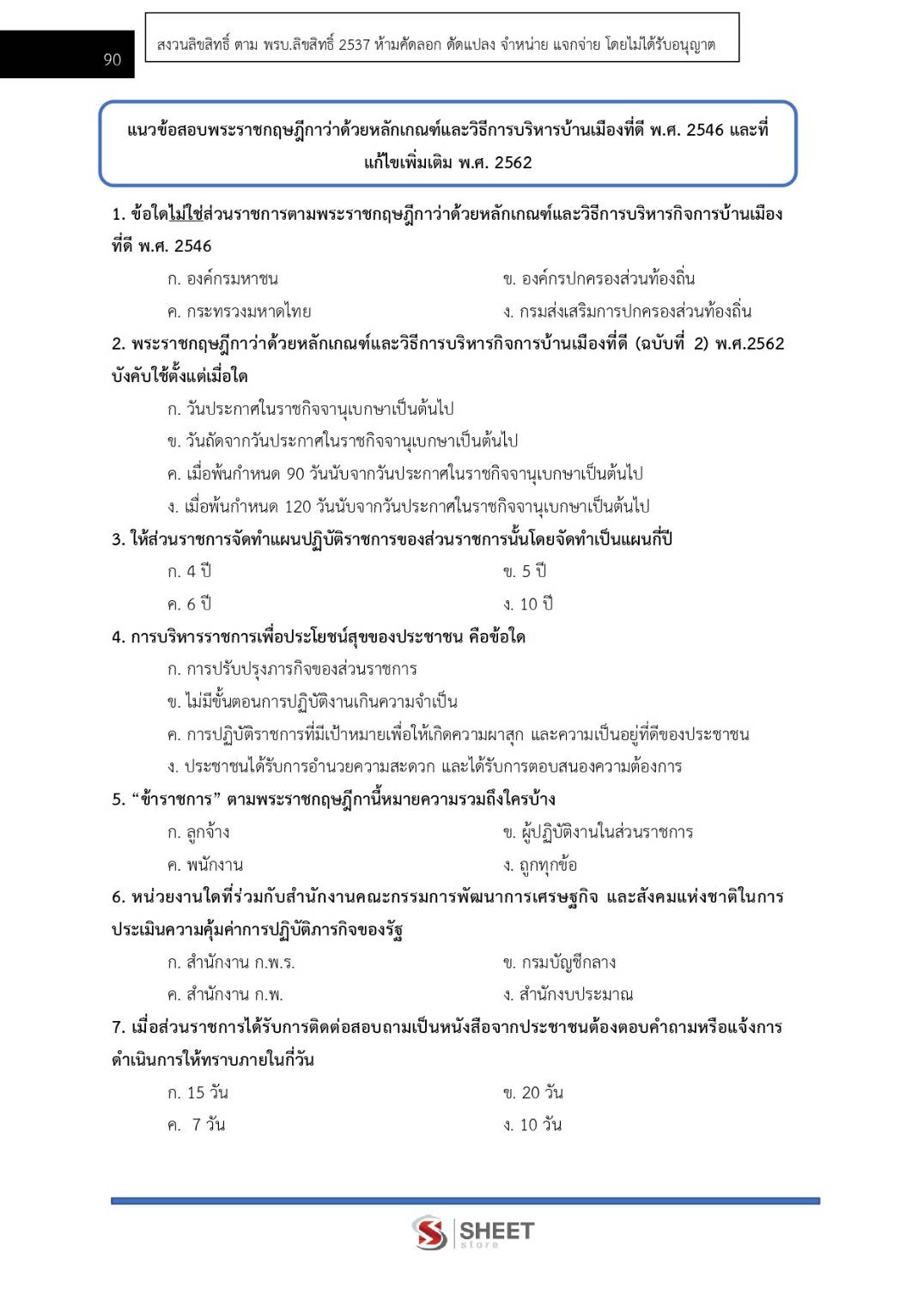 – แนวข้อสอบสรุปสาระสำคัญพระราชกฤษฎีกาว่าด้วยหลักเกณฑ์และวิธีการบริหารบ้านเมืองที่ดี พ.ศ. 2546 และที่แก้ไขเพิ่มเติม พ.ศ. 2562