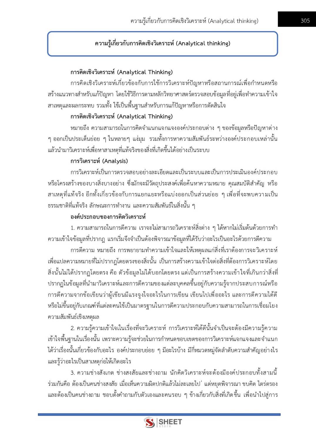 – ความรู้เกี่ยวกับการคิดเชิงวิเคราะห์ (Analytical thinking)