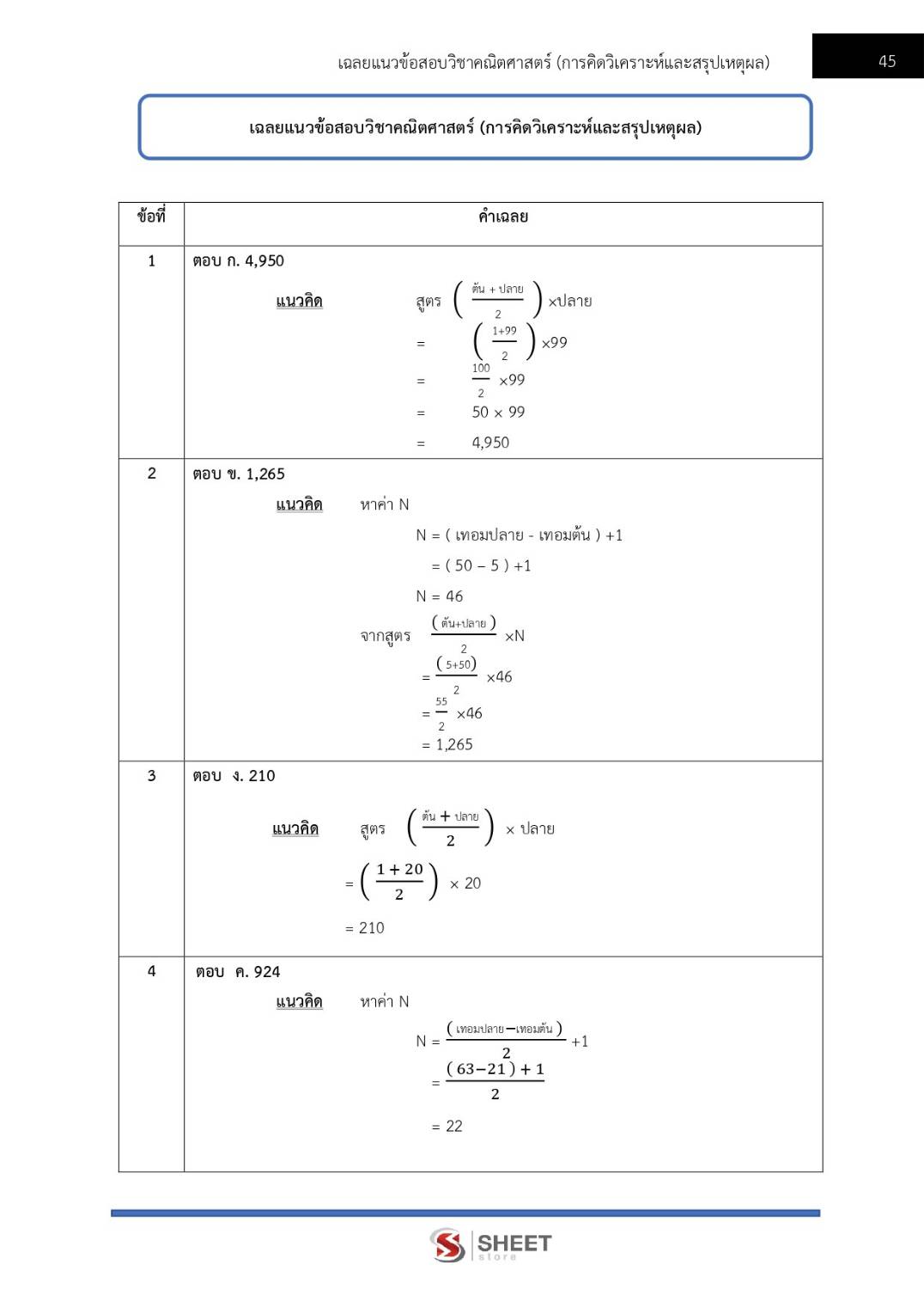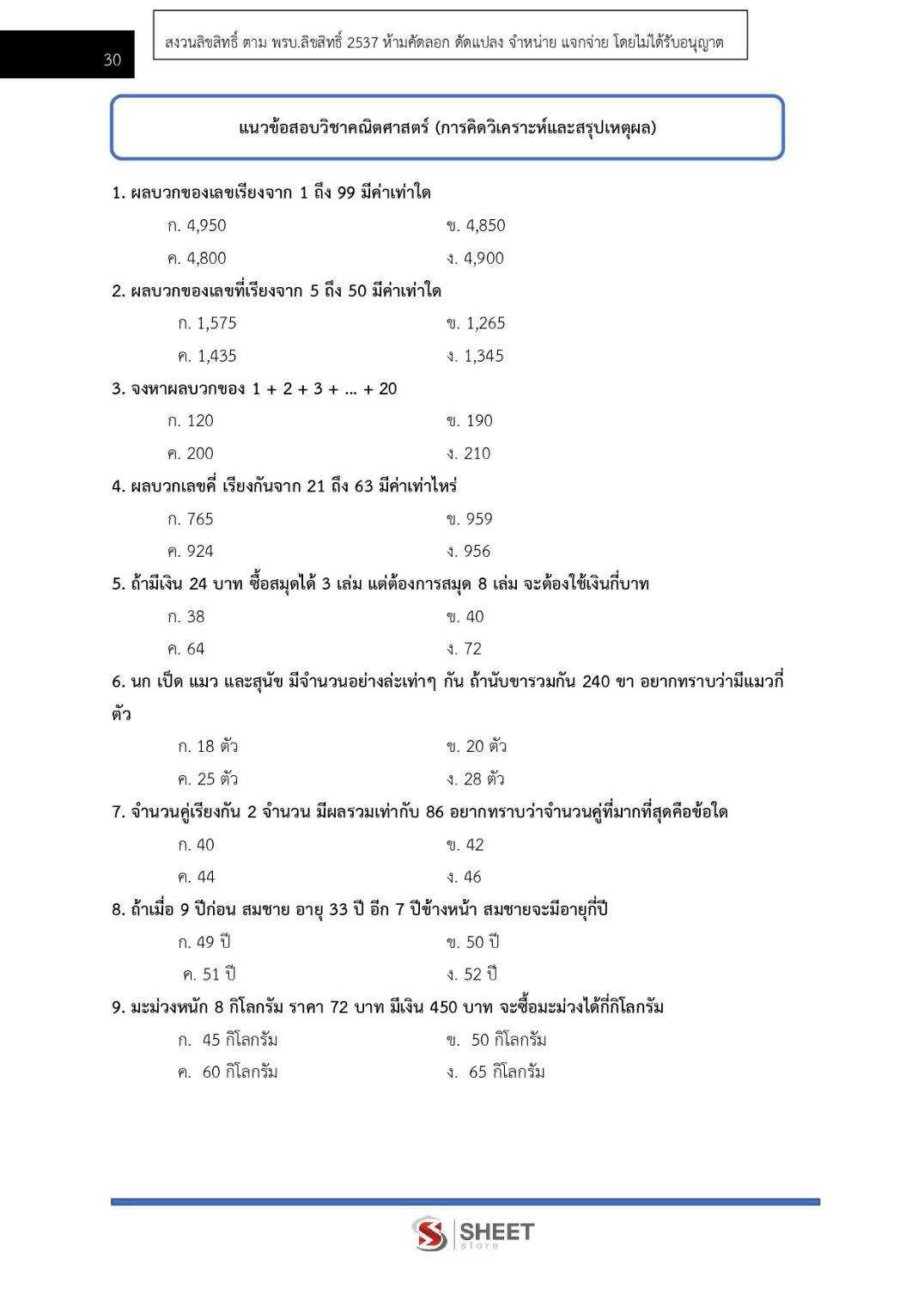– แนวข้อสอบวิชาคณิตศาสตร์ วิเคราะห์และสรุปเหตุผล