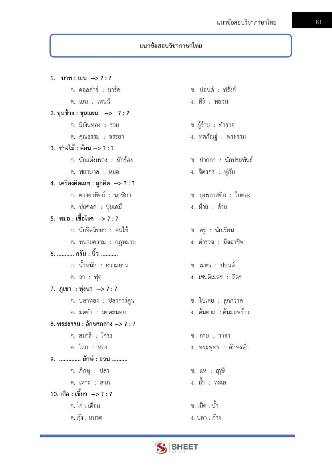 – แนวข้อสอบวิชาภาษาไทย