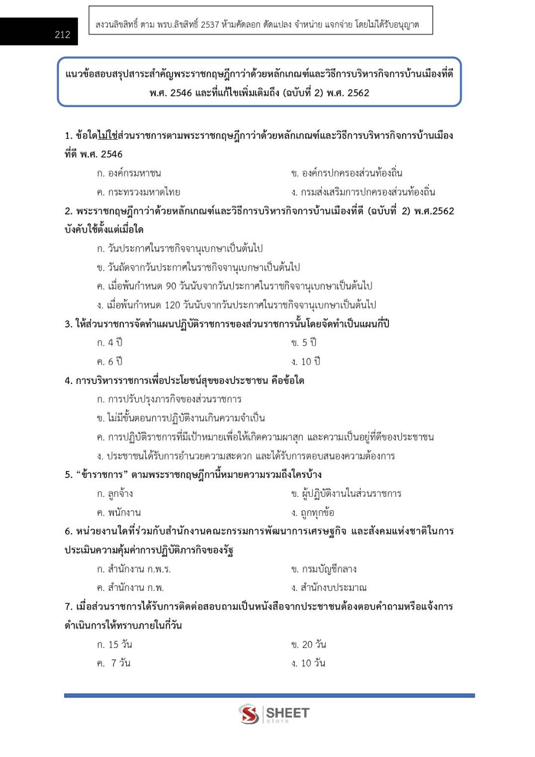– แนวข้อสอบพระราชกฤษฎีกาว่าด้วยหลักเกณฑ์และวิธีการบริหารบ้านเมืองที่ดี พ.ศ. 2546 และที่แก้ไขเพิ่มเติม พ.ศ. 2562