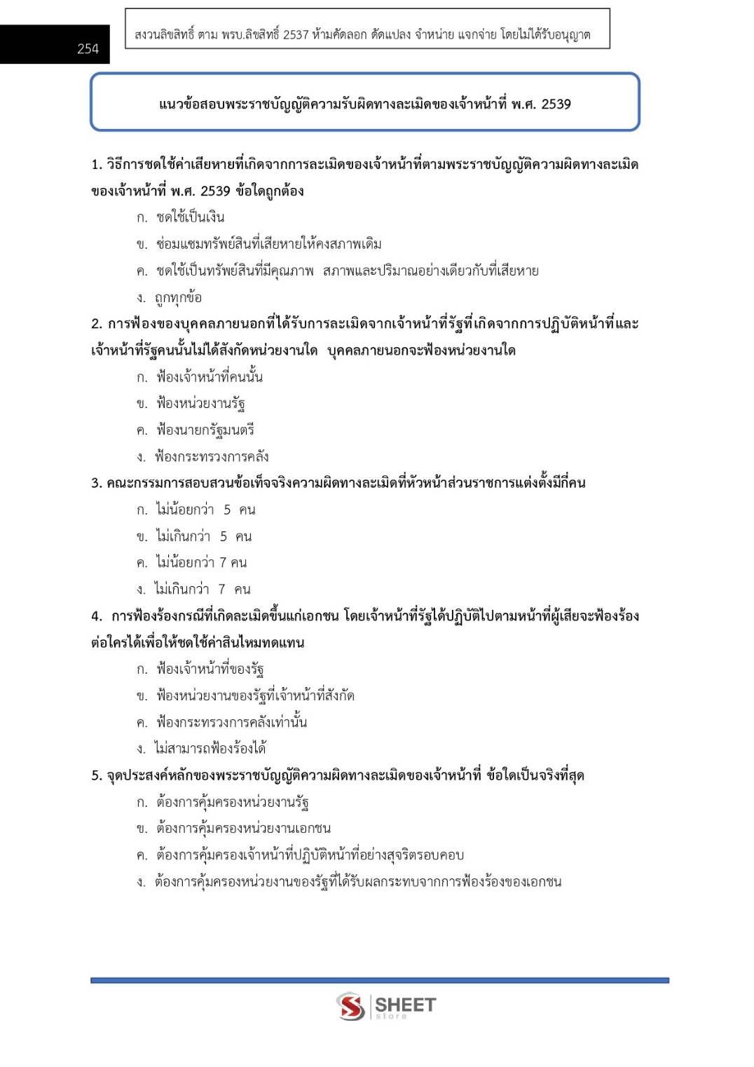 – แนวข้อสอบพระราชบัญญัติความรับผิดทางละเมิดของเจ้าหน้าที่ พ.ศ. 2539