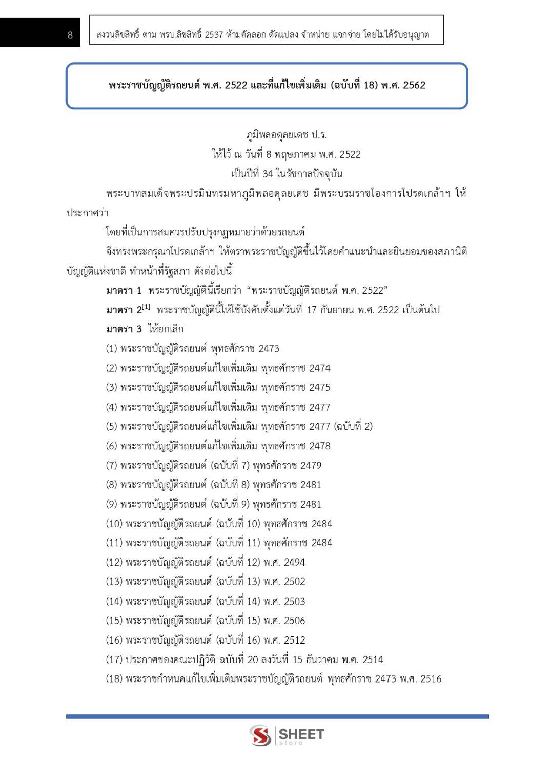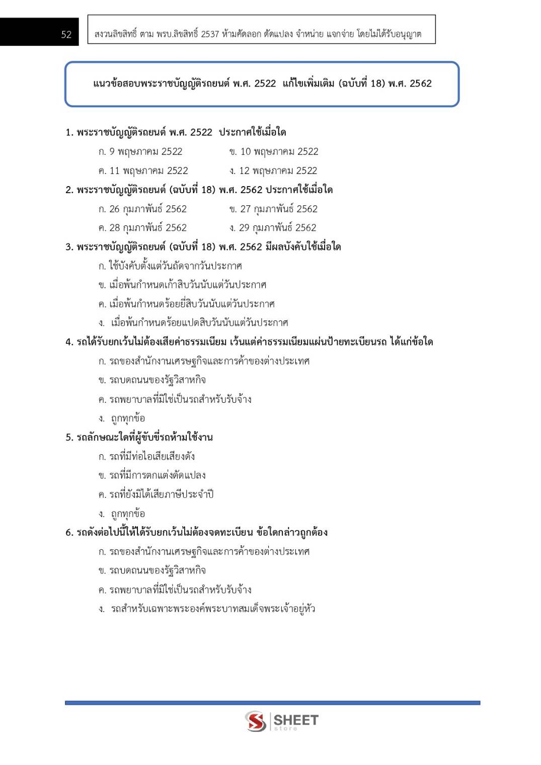 – แนวข้อสอบพระราชบัญญัติรถยนต์ พ.ศ. 2522 และที่แก้ไขเพิ่มเติม (ฉบับที่ 18) พ.ศ. 2562