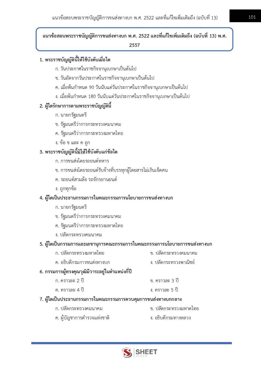 – แนวข้อสอบพระราชบัญญัติการขนส่งทางบก พ.ศ. 2522 และที่แก้ไขเพิ่มเติม (ฉบับที่ 13) พ.ศ. 2557