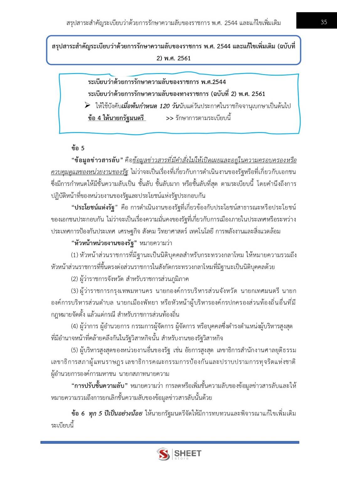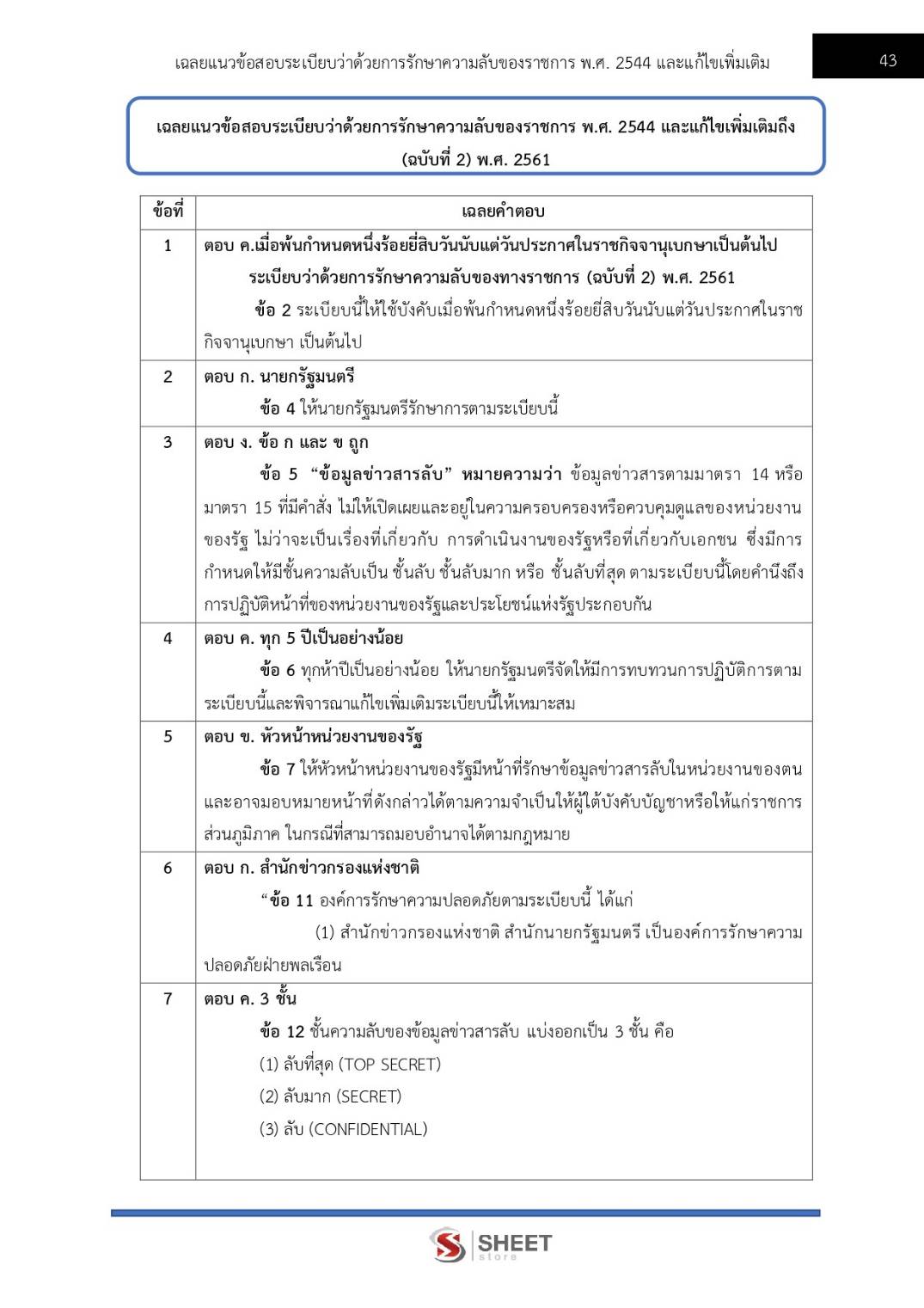 – แนวข้อสอบสรุปสาระสำคัญระเบียบว่าด้วยการรักษาความลับของราชการ พ.ศ. 2544 และแก้ไขเพิ่มเติม (ฉบับที่ 2) พ.ศ. 2561